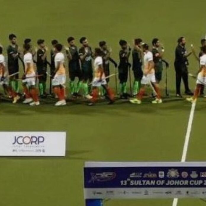 सुल्तान ऑफ जोहर कप हॉकी टूर्नामेंट में भारत और पाकिस्तान के बीच मुकाबला ड्रॉ हो गया। अंडर-21 वर्ग का टूर्नामेंट मलेशिया के जोहर बाहरु में खेला जा रहा है। मंगलवार को भारत-पाकिस्तान के बीच ग्रुप स्टेज का मुकाबला 3-3 के स्कोर के साथ खत्म हुआ। आखिरी क्वार्टर में भारत ने 2 गोल दागकर मैच ड्रॉ कराया। खास बात यह रही कि मुकाबले के दौरान दोनों टीमों ने हैंडशेक भी किया। इसी साल हुए पहलगाम आतंकी हमले और ऑपरेशन सिंदूर के बाद भारत और पाकिस्तान के बीच राजनीतिक तनाव की स्थिति है। जिस कारण मेंस क्रिकेट एशिया कप और विमेंस वनडे वर्ल्ड कप में दोनों टीमों के प्लेयर्स ने एक-दूसरे से हाथ नहीं मिलाया था, लेकिन हॉकी में ऐसा कुछ नहीं हुआ। पाकिस्तान ने पहले क्वार्टर में बढ़त बनाई