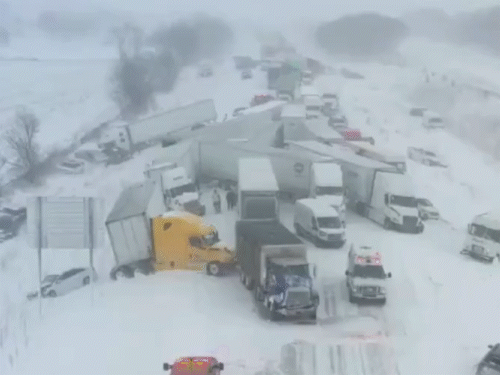 अमेरिका में 100 से ज्यादा गाड़ियां आपस में टकराई, VIDEO:बर्फीले तूफान की वजह से हादसा, 30 से ज्यादा ट्रक फंसे