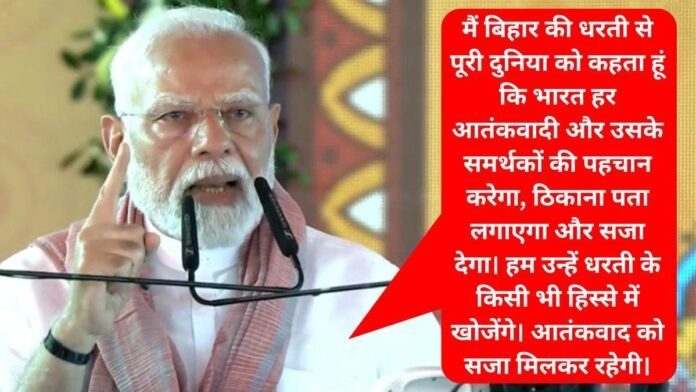 टॉप न्यूज़ ‘आतंकियों और उनके आकाओं को कल्पना से बड़ी सजा मिलेगी, उनकी बची-कुची जमीन को मिट्टी में मिलाने का समय आ गया’… बिहार के मधुबनी में बोले पीएम मोदी By Krishna - April 24, 2025 0 25 FacebookTwitterPinterestWhatsApp Pahalgam Attack: यह पहला मौका रहा जब हमले के बाद पीएम मोदी किसी सार्वजनिक कार्यक्रम में शामिल हुए। पीएम मोदी ने कहा- ये हमला सिर्फ निहत्थे पर्यटकों पर नहीं हुआ है, देश के दुश्मनों ने भारत की आस्था पर हमला करने का दुस्साहस किया है।