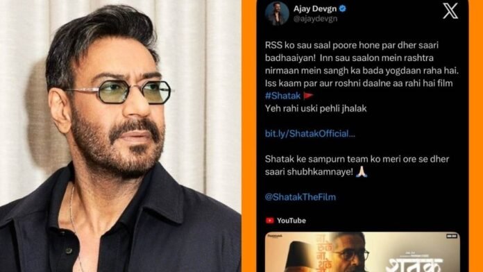 टॉप न्यूज़ आरएसएस के 100 वर्ष पूरे होने पर फिल्म ‘शतक’ के टीजर पर अजय देवगन ने दिया रिएक्शन By Krishna - February 4, 2026 0 2 FacebookTwitterPinterestWhatsApp टीज़र में उन संस्थापक और मार्गदर्शक व्यक्तित्वों को सामने लाया गया है, जिनका योगदान बहुत महत्वपूर्ण रहा, जिनके योगदान को पर्याप्त पहचान नहीं मिली। इनमें डॉ. केशव बलिराम हेडगेवार और गुरुजी माधव सदाशिवराव गोलवलकर शामिल हैं।