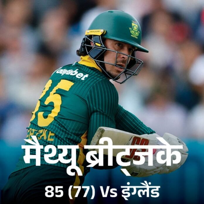 इंग्लिस टीम ने टॉस जीतकर पहले बॉलिंग का फैसला किया। साउथ अफ्रीका ने 50 ओवर में 8 विकेट के नुकसान पर 330 रन बनाए और इंग्लैंड को 331 रन का टारगेट दिया। टीम के लिए मैथ्यू ब्रीट्जके ने 85, ट्रिस्टन स्टब्स ने 58 और डेवाल्ड ब्रेविस ने महज 20 बॉल पर 4रन बनाए। रयान रिकेल्टन ने 35 और कॉर्बिन बॉश ने नाबाद 32 रन बनाए। ब्रीट्जके और स्टब्स के बीच चौथे विकेट के लिए 126 बॉल पर 147 रन की साझेदारी हुई। इंग्लैंड की ओर से तेज गेंदबाज जोफ्रा आर्चर ने 4 विकेट झटके। आदिल रशीद ने 2 विकेट लिए। जैकब बेथल को 1 विकेट मिला। इंग्लैंड टीम की ओर से भी तीन अर्धशतक लगे