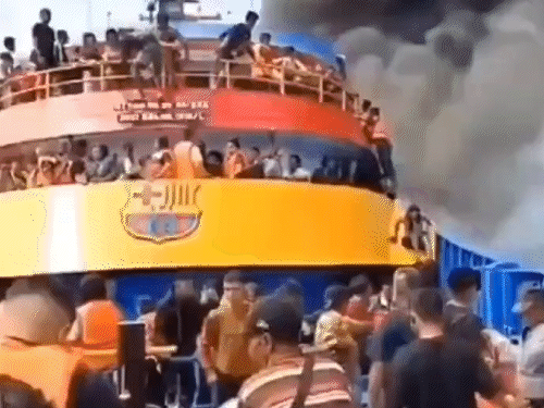 इंडोनेशिया के उत्तरी सुलावेसी प्रांत में रविवार दोपहर केएम बार्सिलोना वीए नाम के यात्री जहाज में तालिसे द्वीप के पास भीषण आग लग गई। हादसे में 3 लोगों की मौत हो गई। जहाज में 280 यात्री सवार थे, जिनमें से लगभग 150 यात्रियों को सुरक्षित बचा लिया गया है। जबकि 100 से ज्यादा लोग लापता हैं, इनकी तलाश जारी है। आग के तेजी से फैलने के कारण अपनी जान बचाने के लिए कई यात्री समुद्र में कूद गए थे। यह तालौद द्वीपों से मनाडो पोर्ट की ओर जा रहा था। क्षेत्रीय आपदा प्रबंधन एजेंसी ने स्थानीय मीडिया को बताया कि आग दोपहर करीब 1:30 बजे शुरू हुई और तेजी से पूरे जहाज में फैल गई। अभी तक आग लगने का कारण पता नहीं चल सका है। इंडोनेशिया की राष्ट्रीय खोज और बचाव एजेंसी, नौसेना, तटरक्षक बल और स्थानीय मछुआरों ने मिलकर तुरंत बचाव अभियान शुरू किया। लिकुपांग पोर्ट पर एक कमांड पोस्ट बनाया गया है, जहां से बचाव कार्य किया जा रहा है। जहाज में आग लगने के बाद की फुटेज देखें… आग के कारणों की जांच होगी आग लगने का सटीक कारण अभी तक स्पष्ट नहीं है। अधिकारियों ने कहा कि सभी यात्रियों का पता लगने के बाद इसकी जांच शुरू की जाएगी। यात्रियों के परिजनों से शांत रहने और आधिकारिक अपडेट का इंतजार करने की अपील की गई है। केएम बार्सिलोना वीए मनाडो-ताहुना मार्ग पर चलता था और आसपास के द्वीपों को भी जोड़ता था। ———————————————— ये खबर भी पढ़ें… साउथ कोरिया में बारिश से बाढ़-लैंडस्लाइड, 14 की मौत: PHOTOS:12 लापता, सड़कें-इमारतें डूबी, गांव मलबे में दबा; रेस्क्यू ऑपरेशन जारी साउथ कोरिया में बुधवार से भारी बारिश हो रही है। बारिश से आई बाढ़ और लैंडस्लाइड के कारण 14 लोगों की मौत हो गई है, जबकि 12 लोग अभी भी लापता हैं। आपदा प्रबंधन कार्यालय के मुताबिक मरने वालों की संख्या बढ़ सकती है। साउथ कोरिया के गैप्योंग शहर में लैंडस्लाइड से प्रभावित लोग राहत शिविरों में पहुंच रहे हैं। पूरी खबर पढ़ें…
