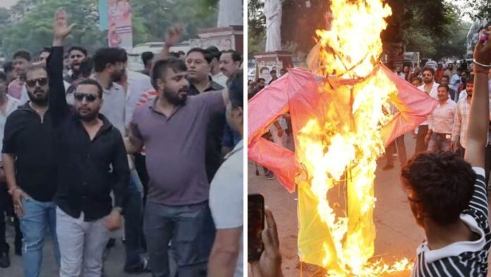 टॉप न्यूज़ इंदौर में BJP कार्यालय के बाहर खाती समाज का हंगामा, नगर अध्यक्ष के खिलाफ नारेबाजी, पुतला फूंका By Krishna - October 28, 2025 0 10 FacebookTwitterPinterestWhatsApp MP Khati Community Protest: इंदौर में भाजपा कार्यालय के बाहर खाती समाज के लोगों ने जमकर विरोध प्रदर्शन किया। प्रदर्शनकारियों ने भाजपा नगर अध्यक्ष सुमित मिश्रा के खिलाफ नारे लगाए, काले बैनर लगाए और उनका पुतला दहन किया।