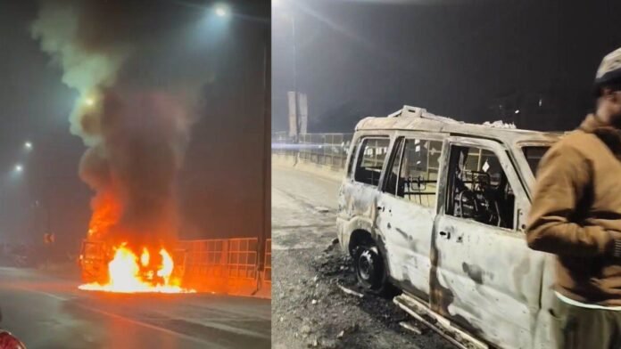 खमतराई ओवरब्रिज पर चलती स्कॉर्पियो में लगी आग, चार लोगों ने कूदकर बचाई जान