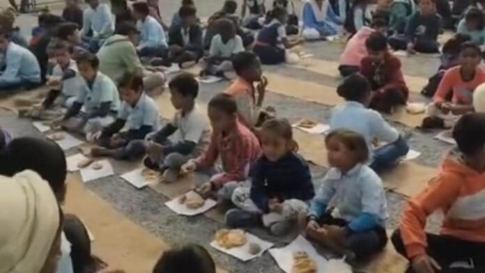 गणतंत्र दिवस पर शर्मनाक : मैहर के सरकारी स्कूल में रद्दी कॉपियों और किताबों के फटे पन्नों पर बच्चों को परोसा गया भोजन