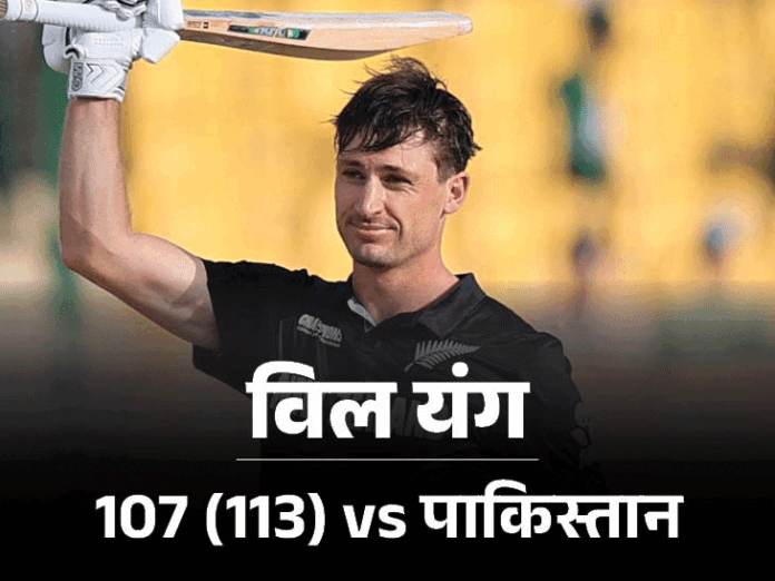 टॉस हारकर पहले बैटिंग करने उतरी न्यूजीलैंड ने 73 रन पर 3 विकेट गंवा दिए। ओपनर विल यंग एक एंड पर टिके हुए थे। उन्होंने टॉम लैथम के साथ सेंचुरी पार्टनरशिप की। यंग 107 रन बनाकर आउट हुए। लैथम ने फिर ग्लेन फिलिप्स के साथ भी सेंचुरी पार्टनरशिप कर ली। फिलिप्स 61 रन बनाकर आउट हुए। लैथम ने 118 रन की पारी खेली। पाकिस्तान से अबरार अहमद को 1 विकेट मिला। न्यूजीलैंड ने 5 विकेट खोकर 320 रन बनाए। खराब शुरुआत के बाद बिखरा पाकिस्तान