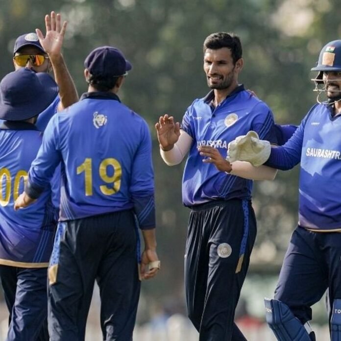 सौराष्ट्र ने चौथी बार विजय हजारे ट्रॉफी के फाइनल में जगह बना ली है। टीम ने शुक्रवार को दूसरे सेमीफाइनल मुकाबले में पंजाब को 9 विकेट से हराया। हरविक देसाई की कप्तानी वाली टीम ने 292 रनों का टारगेट 39.3 ओवर में एक विकेट पर हासिल कर लिया। पंजाब ने BCCI के सेंटर ऑफ एक्सीलेंस मैदान पर टॉस हारकर पहले बैटिंग करते हुए 50 ओवर में सभी विकेट खोकर 291 रन बनाए। सौराष्ट्र की ओर से विश्वराज जडेजा ने 127 बॉल पर नाबाद 165 रन की पारी खेली। उनकी पारी में 18 चौके और 3 छक्के शामिल रहे। प्रेरक मांकड़ ने नाबाद 52 और कप्तान हरविक देसाई ने 64 रन बनाए। खिताबी मुकाबले में सौराष्ट्र का सामना पिछले साल की रनरअप विदर्भ की टीम से होगा। यह मैच 18 जनवरी को दोपहर 1:30 बजे से BCCI के सेंटर ऑफ एक्सीलेंस मैदान पर खेला जाएगा। रन चेज में ओपनर्स ने 172 रन की साझेदारी की