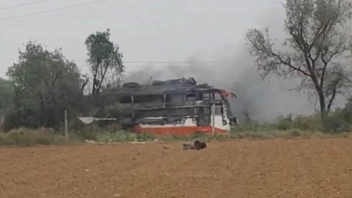 टॉप न्यूज़ जयपुर में मजदूरों से भरी स्लीपर बस में लगी आग, 10 यात्री बुरी तरह झुलसें; 2 की मौत By Krishna - October 28, 2025 0 9 FacebookTwitterPinterestWhatsApp राजस्थान के जयपुर ग्रामीण क्षेत्र के मनोहरपुर में हाई टेंशन तार के चपेट में आने से एक मजदूरों से भरी स्लीपर बस में आग लग गई। आग लगने से बस में सवार 10 मजदूर गंभीर रूप से झुलस गए हैं, जिसमें से 2 की मौत हो गई।