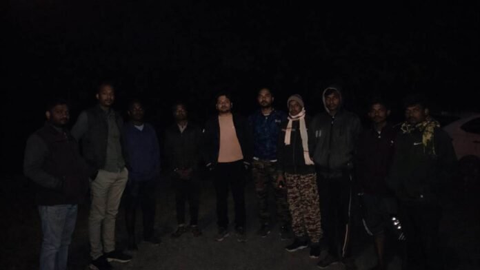 शोक पत्र बांटकर बाइक से घर लौट रहे दो ग्रामीणों के सामने अचानक हाथियों का दल आ जाने से अफरा-तफरी मच गई। जान बचाने के लिए एक ग्रामीण को पेड़ पर चढ़ना पड़ा और वह अंधेरे में करीब एक घंटे तक हाथियों के बीच लटका रहा। बाद में वन विभाग की टीम और स्थानीय ग्रामीणों की मदद से सुरक्षित रेस्क्यू किया गया।