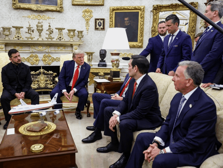 यूक्रेन के राष्ट्रपति जेलेंस्की सोमवार को अमेरिकी राष्ट्रपति ट्रम्प से मुलाकात के लिए व्हाइट हाउस पहुंचे। ट्रम्प ने उनका स्वागत किया। दोनों नेताओं ने यूक्रेन जंग से जुड़े सवालों के जवाब दिए। ट्रम्प ने कहा कि वे जेलेंस्की और यूरोपीय नेताओं के साथ मुलाकात के बाद पुतिन से फोन पर बात करेंगे। ट्रम्प ने कहा कि पहले उन्हें लगता था कि यूक्रेन जंग खत्म कराना उनके लिए बहुत आसान होगा, लेकिन यह बहुत मुश्किल हो रहा है। ट्रम्प ने अपना पुराना बयान भी दोहराया कि जेलेंस्की चाहें तो जंग तुरंत रुक सकती है। अमेरिकी राष्ट्रपति ने कहा कि नाटो सुरक्षा न मिलने के बावजूद वे यूक्रेन को बहुत अच्छी सिक्योरिटी देंगे। इस बीच जेलेंस्की ने फिर से कहा कि वे किसी भी हाल में रूस के साथ जमीन की अदला-बदली के लिए तैयार नहीं हैं। हालांकि, उन्होंने कहा कि वे पुतिन के साथ बातचीत के लिए तैयार हैं। ट्रम्प कुछ ही देर में यूरोपीय नेताओं से भी मुलाकात करेंगे। ट्रम्प और जेलेंस्की की मीटिंग में फ्रांस, ब्रिटेन, जर्मनी, फिनलैंड, इटली के लीडर्स के अलावा नाटो और यूरोपीय यूनियन के चीफ शामिल रहेंगे। ट्रम्प-जेलेंस्की मीटिंग की 5 तस्वीरें… ट्रम्प-जेलेंस्की की बातचीत से जुड़ी पल-पल के अपडेट के लिए नीचे ब्लॉग से गुजर जाइए…