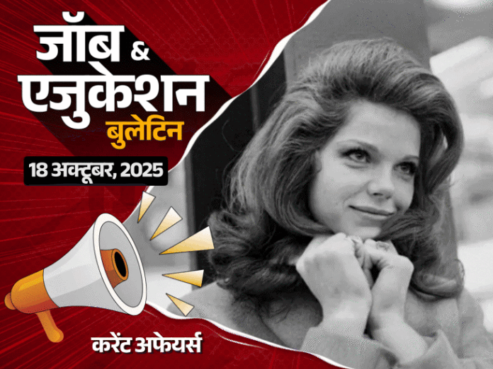 नमस्कार टॉप जॉब्स में आज बात मध्यप्रदेश पावर जनरेटिंग कंपनी और राजस्थान PSC में भर्ती की। करेंट अफेयर्स में बात पीएम मोदी की मिस्र के विदेश मंत्री से मुलाकात समेत अन्य खबरों की। टॉप स्टोरी में बात छत्तीसगढ़ में शराब पीकर स्कूल पहुंचें टीचर के वायरल वीडियो की। 1.पीएम मोदी ने मिस्र के विदेश मंत्री से मुलाकात की पीएम नरेंद्र मोदी ने शुक्रवार को नई दिल्ली में मिस्र के विदेश मंत्री बद्र अब्देलट्टी से मुलाकात की। 2. पीएम मोदी ने श्रीलंका के पीएम से मुलाकात की पीएम नरेंद्र मोदी ने शुक्रवार को श्रीलंकाई प्रधानमंत्री हरिनी अमरसूर्या से मुलाकात की। 3. अफगानिस्तान क्रिकेट बोर्ड ने ट्राई टी-20 सीरीज से नाम वापस लिया अफगानिस्तान क्रिकेट बोर्ड (ACB) ने नवंबर में पाकिस्तान में होने वाली ट्राई टी-20 सीरीज से नाम वापस ले लिया। दरअसल, पाकिस्तान ने शुक्रवार को अफगानिस्तान पर एयर स्ट्राइक की थी, जिसके बाद ACB ने ये कदम उठाया है। एयर स्ट्राइक में 3 क्रिकेटर्स की मौत हुई है। 4. ब्रिटिश एक्ट्रेस सामंथा एगर का निधन ब्रिटिश ऑस्कर नॉमिनेटेड एक्ट्रेस सामंथा एगर का निधन हो गया है। वे 86 वर्ष की थीं और लंबे समय से बीमारी से जूझ रहीं थीं। टॉप जॉब्स ​​​1. मध्यप्रदेश पावर जनरेटिंग कंपनी ​​​में आवेदन शुरू मध्यप्रदेश पावर जनरेटिंग कंपनी ने 131 पदों पर भर्ती का नोटिफिकेशन जारी किया है। इस भर्ती के लिए आवेदन प्रक्रिया 17 अक्टूबर से शुरू हो गई है। उम्मीदवार वेबसाइट mppgcl.mp.gov.in पर जाकर आवेदन कर सकते हैं। फीस जमा करने की आखिरी तारीख भी 15 नवंबर तय की गई है। 2. RPSC में स्टैटिकल ऑफिसर की भर्ती राजस्थान लोक सेवा आयोग यानी RPSC ने स्टैटिकल ऑफिसर के पदों पर भर्ती निकाली है। इस भर्ती के माध्यम से 113 पदों को भरा जाएगा। उम्मीदवार RPSC की ऑफिशियल वेबसाइट rpsc.rajasthan.gov.in पर जाकर आवेदन कर सकते हैं। और सरकारी नौकरियों के लिए यहां क्लिक करें… टॉप स्टोरी 1. छत्तीसगढ़ में शराब पीकर बैठे टीचर का वीडियो वायरल छत्तीसगढ़ के बिलासपुर में एक टीचर का वीडियो सोशल मीडिया पर वायरल हो रहा है। इस वीडियो में टीचर क्लास रूम में महिला शिक्षक और बच्चों के सामने अपनी शर्ट उतार कर बैठा नजर आ रहा है। आरोप है कि टीचर आए दिन शराब पीकर स्कूल आता है और बच्चों के साथ गाली-गलौज और मारपीट करता है। क्लास में बच्चे बैठे हैं, वहीं, चेयर पर बैठा टीचर इतने नशे में है कि उसके मुंह से सही तरीके से आवाज तक नहीं निकल रही है। उसकी जुबान लड़खड़ा रही थी। वीडियो वायरल होने के बाद जिला शिक्षा अधिकारी विजय टांडे ने आरोपी टीचर को सस्पेंड कर दिया है। साथ ही विभागीय जांच की बात भी कही है। ऐसी ही और खबरें यहां पढ़ें…