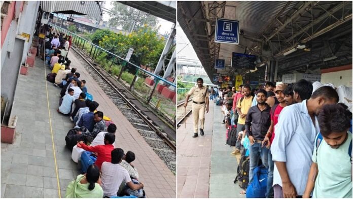 दीपावली पर घर लौटने की चाह में इंदौर रेलवे स्टेशन पर शनिवार को भारी भीड़ और अफरातफरी रही। इंदौर-पटना एक्सप्रेस में थर्ड और सेकंड एसी कोच तक यात्रियों से खचाखच भर गए, जबकि स्लीपर और जनरल कोचों में लोग दरवाजों तक लटके नजर आए। यात्रियों की भीड़ को देखते हुए पुलिस को मोर्चा संभालना पड़ा।