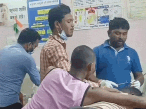 छत्तीसगढ़ के महासमुंद जिले में एम्बुलेंस ड्राइवर ने सड़क हादसे में घायल मरीज के सिर पर टांके लगा दिए। इस दौरान ड्यूटी पर मौजूद डॉक्टर ही ड्राइवर को बताता रहा कि कैसे टांके लगाना है। घटना का वीडियो सोशल मीडिया पर वायरल हो गया। वीडियो सामने आते ही CMHO ने डॉक्टर, ड्रेसर स्टाफ और ड्राइवर के खिलाफ FIR के निर्देश दिए हैं। मामला बागबाहरा के सामुदायिक स्वास्थ्य केंद्र का है। इससे पहले गरियाबंद जिला अस्पताल में नर्स की जगह महिला गार्ड के मरीज को इंजेक्शन लगाया था। इस मामले में हाईकोर्ट ने संज्ञान लेते हुए शासन को जमकर फटकार लगाई थी। पहले देखिए ये तस्वीरें- जानकारी के मुताबिक, 12 अगस्त की रात डोंगा खम्हरिया के रहने वाले नोमेश ध्रुव को सड़क हादसे में चोटें आई थी। रात 10:15 बजे 112 एम्बुलेंस से उसे बागबाहरा सीएचसी लाया गया। यहां डॉ. सौम्य रंजन पटेल की ड्यूटी थी। इलाज के दौरान जब मरीज को टांके लगाने की जरूरत पड़ी, तो डॉक्टर की मौजूदगी में एम्बुलेंस ड्राइवर मनोज यादव ने घायल को टांके लगा दिए। डॉक्टर-ड्राइवर के खिलाफ FIR के निर्देश जिसका किसी ने फोटो-वीडियो बना लिया। इसे सोशल मीडिया पर वायरल कर दिया। अब CMHO डॉ. नागेश्वर राव ने डॉक्टर, ड्रेसर स्टाफ और एम्बुलेंस ड्राइवर के खिलाफ FIR दर्ज कराने के निर्देश दिए हैं। साथ ही जांच टीम का गठन किया गया है। CMHO डॉ. नागेश्वर राव ने कहा कि एम्बुलेंस ड्राइवर के टांके लगाने की घटना पर संज्ञान लिया है। बीएमओ को भी नोटिस जारी किया है। साथ ही उस समय जो भी वहां मौजूद था, सभी के खिलाफ FIR के लिए थाने में आवेदन दिया है। दोषी पाए जाने पर होगी कार्रवाई इस मामले में बीएमओ डॉ. बुधियार सिंह बढ़ई ने बताया कि, घटना के दिन वे ड्यूटी पर नहीं थे। CMHO ने सभी BMO को सख्त निर्देश दिए हैं कि, भविष्य में ऐसी लापरवाही न हो। जांच में जो भी दोषी पाया जाएगा, उसके खिलाफ कार्रवाई की जाएगी। गरियाबंद में महिला गार्ड ने लगाया था इंजेक्शन इससे पहले, गरियाबंद जिला अस्पताल की एक तस्वीर वायरल हुई थी। जिसमें अस्पताल की महिला गार्ड एक महिला मरीज को इंजेक्शन लगाती दिख रही थी। घटना पिछले 19 अगस्त की है, जब पूर्व पार्षद योगेश बघेल अपने भतीजे के इलाज के लिए जिला अस्पताल पहुंचे थे। इस दौरान उन्होंने देखा कि वार्ड में स्टाफ नर्स की जगह महिला गार्ड मरीज को इंजेक्शन लगा रही है। उन्होंने अपने मोबाइल पर इसकी तस्वीर खींच ली और इसे सोशल मीडिया पर वायरल कर दिया। तस्वीर वायरल होने के बाद हरकत में आए कलेक्टर ने सीएमएचओ और सिविल सर्जन को नोटिस जारी कर जवाब मांगा था। हाईकोर्ट ने भी संज्ञान लेकर सुनवाई की थी। पढ़ें पूरी खबर… ………………………………… इससे संबंधित ये खबर भी पढ़ें… नर्स की जगह महिला गार्ड ने लगाया इंजेक्शन: शासन का जवाब- सिक्योरिट