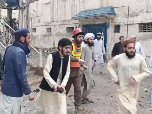 घटना के बाद पेशावर के सभी प्रमुख हॉस्पिटल में इमरजेंसी लगा दी गई है। समा टीवी की रिपोर्ट के मुताबिक शुरुआती जांच में यह एक सुसाइड बम विस्फोट लग रहा है। इसमें मस्जिद का एक हिस्सा भी टूट गया है। खैबर पख्तून ख्वा के आईजी के मुताबिक यह हमला मौलाना हमीदुल हक हक्कानी को निशाना बनाकर किया गया था। मौलाना हमीदुल हक्कानी, तालिबान के गॉडफादर मौलाना समीउल हक हक्कानी का बड़ा बेटा है। सीनियर हक्कानी अफगान तालिबान का कट्टर समर्थक था। उसने साल 1947 में पाकिस्तान में सबसे प्रभावशाली इस्लामी मदरसों में से एक दारुल उलूम हक्कानिया की स्थापना की थी। समीउल हक ने ही तालिबान की स्थापना की थी और मुल्ला उमर समेत कई तालिबानी नेताओं को तैयार किया था। मौलाना समीउल हक्कानी की हत्या 2018 में अज्ञात हमलावरों ने कर दी थी। पिछले साल अफगानिस्तान गया था हक्कानी