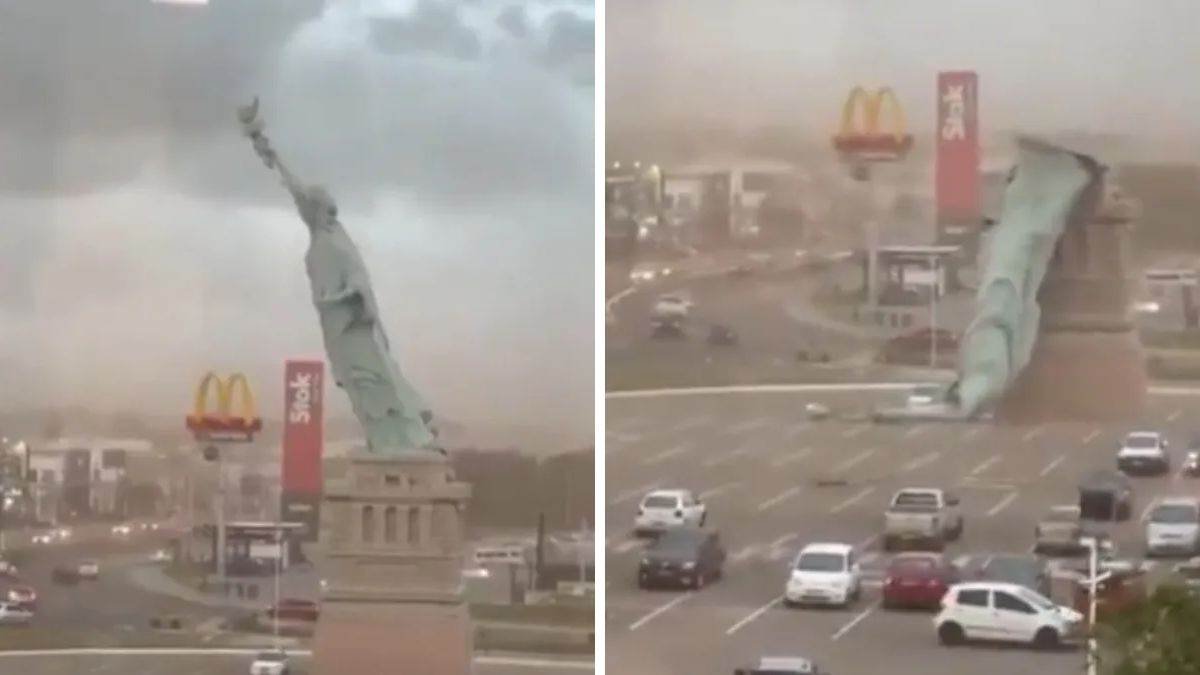 Statue of Liberty Replica Collapses: ब्राजील के गुआइबा शहर में सोमवार, 15 दिसंबर 2025 को आए शक्तिशाली तूफान ने शहर की एक प्रमुख पहचान को नुकसान पहुंचाया। तेज हवाओं के चलते न्यूयार्क स्थित स्टैच्यू ऑफ लिबर्टी की प्रतिकृति जमीन पर गिर गई। हावन रिटेल स्टोर की पार्किंग में लगी इस विशाल मूर्ति के गिरने का वीडियो सोशल मीडिया पर तेजी से वायरल हो रहा है।
