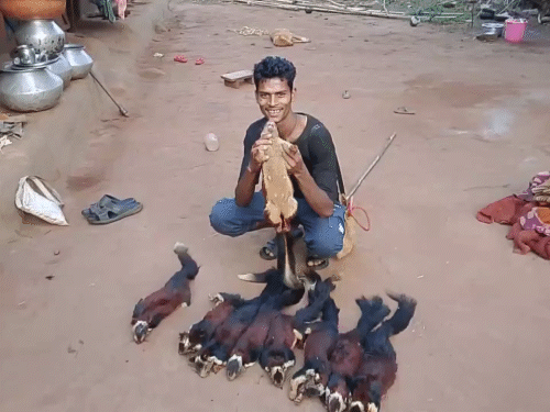छत्तीसगढ़ के दंतेवाड़ा में एक युवक ने महाराष्ट्र के राजकीय पशु ‘शेकरू’ (बड़ी गिलहरी) का शिकार किया। 9 शेकरू को मारने के बाद हिड़मा के गाने पर रील बनाकर इंस्टाग्राम पर डाल दिया। उसके बाद सभी शेकरू को पकाकर खा गए। सोशल मीडिया पर वीडियो वायरल होने के बाद वन विभाग की टीम युवक घर तक पहुंच गई। अब युवक को पकड़ लिया गया है। दुर्लभ प्रजाति के इस वन्य जीव का शिकार करने में युवक के अलावा 10 और भी लोग शामिल हैं, जिनकी तलाश की जा रही है। फिलहाल, विभागीय असफर युवक से पूछताछ कर रहे हैं। घटना बारसूर थाना इलाके की है। पहले देखिए ये तस्वीरें… जानिए क्या है पूरा मामला आरोपी बंशी राम कवासी, बारसूर इलाके का रहने वाला है। सोशल मीडिया पर उसने शेकरू के शिकार के बाद रील पोस्ट की। जिसमें हिड़मा का वायरल गाना भी जोड़ रखा था। ये रील दंतेवाड़ा वन विभाग के पास पहुंचा। जिसके बाद DFO रंगनाधा रामाकृष्णा वाय के निर्देश पर दंतेवाड़ा रेंजर डॉ प्रीतेश पांडेय और गीदम रेंजर ज्योत्सना पांडेय के नेतृत्व में टीम बनाई गई। टीम ने युवक की तलाश शुरू की। लोकेशन ट्रेस किया, फिर घर तक पहुंची टीम वन विभाग की टीम ने युवक की इंस्टाग्राम ID से उसका नंबर और लोकेशन निकाला। फिर बारसूर के अंदरूनी इलाके अबूझमाड़ क्षेत्र में बसे एक गांव पहुंची। जहां से युवक को पकड़ लिया गया। पूछताछ में युवक ने बताया कि शिकार में उसके साथ कुल 11 और लोग शामिल थे। जिनकी तलाश जारी है। युवक ने बताया कैसे किया शिकार आरोपी ने वन विभाग की टीम को बताया कि, जंगल में पेड़ों पर शेकरू रहते हैं। करीब दो-तीन दिन पहले वह अपने कुछ साथियों के साथ जंगल गया था, जहां पहले उसने जमीन और पेड़ों की टहनियों पर ही कुछ खाने के लिए रख दिया था। जब शेकरू झुंड में खाना खाने पहुंचे तो गुलेल मारकर 9 शेकरू का शिकार किया। इसके बाद उन्हें घर लेकर आए। फिर घर के आंगन में रखकर इंस्टाग्राम रील बनाई, फिर साथियों के साथ मिलकर शेकरू को पकाकर खा गए। ये पहली दफा नहीं था कि शेकरू का शिकार किया गया हो, इससे पहले भी इस प्रजाति के वन्य जीवों का शिकार किया गया है। गीदम रेंजर ज्योत्सना पांडेय ने बताया कि, बाकी आरोपियों के नामों का पता चल गया है, जिनकी तलाश जारी है। …………………… इससे जुड़ी ये खबर भी पढ़ें… भालू का मुंह-पंजा तोड़ा, तड़पाकर मार-डाला, VIDEO: सिर पर कई वार किए, पैरों को तार से बांधा; आरोपी पर ₹10 हजार का इनाम छत्तीसगढ़ के बस्तर में भालू के साथ क्रूरता का वीडियो सोशल मीडिया पर जमकर वायरल हो रहा है। इसमें कुछ ग्रामीणों ने भालू के पैरों को तार से डंडे पर बांधा, मुंह और पंजा तोड़ा, सिर पर वार किया है। इस दौरान भालू दर्द से तड़पता रहा। बताया जा रहा है कि तड़पा-तड़पा कर उसे मार दिया गया है। पढ़ें पूरी खबर