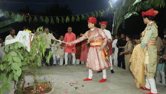 MP News: सिंधिया राजपरिवार के मुखिया केंद्रीय मंत्री ज्योतिरादित्य सिंधिया ने लगभग दो सदी पुरानी परंपरा का निर्वहन करते हुए कुलदेवी मांढरे की माता के नीचे स्थित मैदान में पवित्र शमी के पौधे का पूजन पुत्र महानआर्यमन के साथ किया। शमी पूजन में सिंधिया राजघराने के सरदारों के वंशज भी परंपरागत वेशभूषा में मौजूद थे।