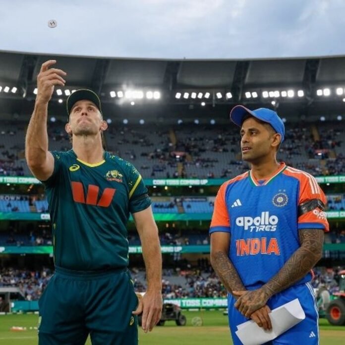 भारत और ऑस्ट्रेलिया के बीच 5 मैचों की टी-20 सीरीज का दूसरा मुकाबला मेलबर्न क्रिकेट ग्राउंड (MCG) में खेला जा रहा है। ऑस्ट्रेलिया ने टॉस जीतकर गेंदबाजी चुनी है। भारतीय टीम ने 7.3 ओवर में 5 विकेट पर 49 रन बना लिया है। अभिषेक शर्मा क्रीज पर हैं। तिलक वर्मा जीरो और सूर्यकुमार यादव (एक रन) को जोश हेजलवुड ने एक ही ओवर में पवेलियन भेजा। उन्होंने शुभमन गिल (5 रन) का विकेट भी लिया। संजू सैमसन (2 रन) को नाथन एलिस ने LBW किया। मैच की पहली बॉल पर गिल रिव्यू लेकर LBW होने से बच गए। हेजलवुड की तीसरी बॉल उनके हेलमेट पर लगी। सीरीज का पहला मैच बारिश के कारण रद्द रहा। इससे पहले, टीम इंडिया को 3 मैचों की वनडे सीरीज में 1-2 से हार झेलनी पड़ी थी, हालांकि टीम ने सिडनी वनडे 9 विकेट से जीता था। मैच का स्कोरबार्ड दोनों टीमों की प्लेइंग-XI भारत: सूर्यकुमार यादव (कप्तान), अभिषेक शर्मा, शुभमन गिल, तिलक वर्मा, संजू सैमसन (विकेटकीपर), शिवम दुबे, अक्षर पटेल, हर्षित राणा, कुलदीप यादव, वरुण चक्रवर्ती, जसप्रीत बुमराह। ऑस्ट्रेलिया: मिचेल मार्श (कप्तान), ट्रैविस हेड, जोश इंग्लिस (विकेटकीपर), टिम डेविड, मिचेल ओवेन, मैथ्यू शॉर्ट, मार्कस स्टोयनिस, जैवियर बार्टलेट, नाथन एलिस, मैथ्यू कुह्नेमन, जोश हेजलवुड।