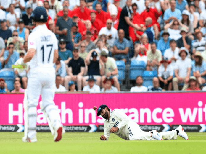 इंग्लिश पारी के 31वें ओवर में ओली पोप को जीवनदान मिला। पोप बुमराह की बाहर जाती बॉल को स्लिप के बाहर जानबूझकर थर्ड मैन की ओर खेलने की कोशिश की, लेकिन बैट का किनारा लेते हुए बॉल गई। जायसवाल ने दाई ओर डाइव लगाकर कैच लेने की कोशिश की, गेंद हाथों में तो आई लेकिन पकड़ में नहीं रही। 10. DRS लेकर आउट होने से बचे रूट