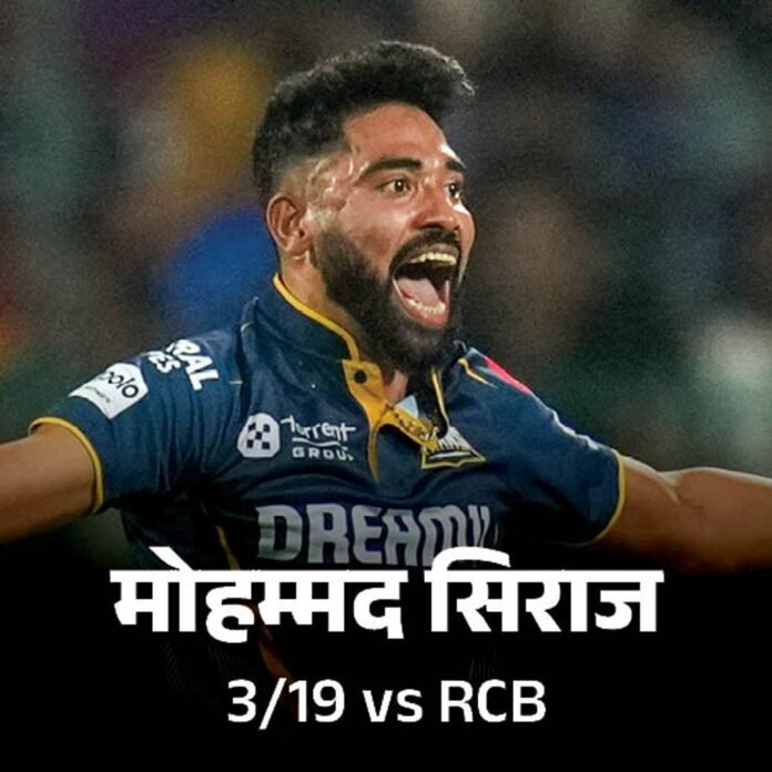 18वें सीजन में घरेलू मैदान पर पहली बार खेलने उतरी रॉयल चैलेंजर्स बेंगलुरु को 8 विकेट से हार झेलनी पड़ी। चिन्नास्वामी स्टेडियम में बुधवार को RCB को पहले बैटिंग करने उतरना पड़ा। टीम ने 40 गेंद के अंदर 4 विकेट गंवा दिए, यहां से स्कोर 200 के करीब नहीं जा सका। बेंगलुरु ने 8 विकेट के नुकसान पर 169 रन बनाए। गुजरात ने 17.5 ओवर में 2 विकेट खोकर आसानी से टारगेट हासिल कर लिया। साई सुदर्शन ने 49 और जोस बटलर ने 73 रन बनाए। मोहम्मद सिराज को 3 विकेट मिले। RCB से लियम लिविंगस्टन ने 54 रन बनाए। पढ़ें मैच अपडेट्स… 5 पॉइंट्स में मैच एनालिसिस… 1. प्लेयर ऑफ द मैच टॉस जीतकर पहले बॉलिंग करने उतरी गुजरात से मोहम्मद सिराज ने बेहतरीन गेंदबाजी की। उन्होंने अपने दूसरे ही ओवर में देवदत्त पडिक्कल को बोल्ड कर दिया। उन्होंने फिर पांचवें ओवर में फिल सॉल्ट को भी बोल्ड किया। सिराज ने अपना स्पेल 19 रन पर 3 विकेट लेकर खत्म किया। प्लेयर ऑफ द मैच मोहम्मद सिराज ने कहा मैं थोड़ा इमोशनल हो गया, मैंने यहां 7 साल तक IPL खेला है। जर्सी का कलर लाल से नीला होना मेरे लिए इमोशनल रहा। मुझे रोनाल्डो बहुत पसंद है, इसलिए विकेट लेने के बाद उनकी तरह सेलिब्रेट करता हूं। टीम इंडिया से ब्रेक मिला तो मैंने अपनी फिटनेस और गलतियों पर काम किया। गुजरात में शामिल होने के बाद मैंने आशीष नेहरा से बात की। उन्होंने मुझे एंजॉय करने के लिए कहा। ईशांत भाई ने मुझे बताया कि किस लाइन पर बॉलिंग करनी है। मेरा माइंडसेट यही है कि बस खुद पर भरोसा करना है। 2. जीत के हीरो 3. फाइटर ऑफ द मैच बेंगलुरु से बैटर लियम लिविंगस्टन ही फाइट दिखा सके। उन्हें 7वें ओवर में बैटिंग करने उतरना पड़ा। लिविंगस्टन ने 19वें ओवर तक बैटिंग की और मुश्किल पिच पर 40 गेंद पर 54 रन की पारी खेली। उन्होंने 1 चौका और 5 छक्के लगाए। हालांकि, उन्हें दूसरे एंड से किसी का साथ नहीं मिला, इसलिए टीम बड़ा स्कोर नहीं बना सकी। 4. टर्निंग पॉइंट टॉस हारकर पहले बैटिंग करने उतरी RCB ने पावरप्ले में ही 3 विकेट गंवा दिए। विराट कोहली 7, देवदत्त पडिक्कल 4 और फिल सॉल्ट 14 ही रन बनाकर आउट हो गए। 7वें ओवर में कप्तान रजत पाटीदार भी पवेलियन लौट गए। टीम ने 42 रन पर 4 विकेट गंवाए। इसी कारण टीम बड़ा स्कोर भी नहीं बना सकी। 5. किसने क्या कहा? बेंगलुरु के कप्तान रजत पाटीदार ने कहा हम 190 रन बनाना चाह रहे थे। शुरुआत में विकेट गंवाना हमें भारी पड़ा। टीम का इंटेंट सही था। पावरप्ले में 3 विकेट गंवाना टर्निंग पॉइंट रहा। दूसरी पारी में पिच बैटिंग के लिए आसान हो गई, लेकिन हमारे गेंदबाजों ने अच्छी बॉलिंग की। इस मैदान पर 18वें ओवर तक मैच को खींचने के लिए बेहतरीन बॉलिंग चाहिए। बैटिंग में जितेश, लियम और टिम ने अच्छी बैटिंग की। एक टीम के रूप में मुझे भरोसा है कि हम आगे के मैचों में अच्छा प्रद