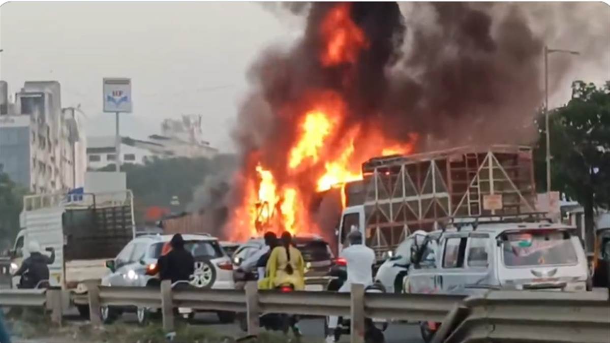 पुणे-बेंगलुरु हाईवे पर बेकाबू कंटेनर वाहनों से टकराया, 8 लोगों की मौत, गाड़ियों में लगी आग