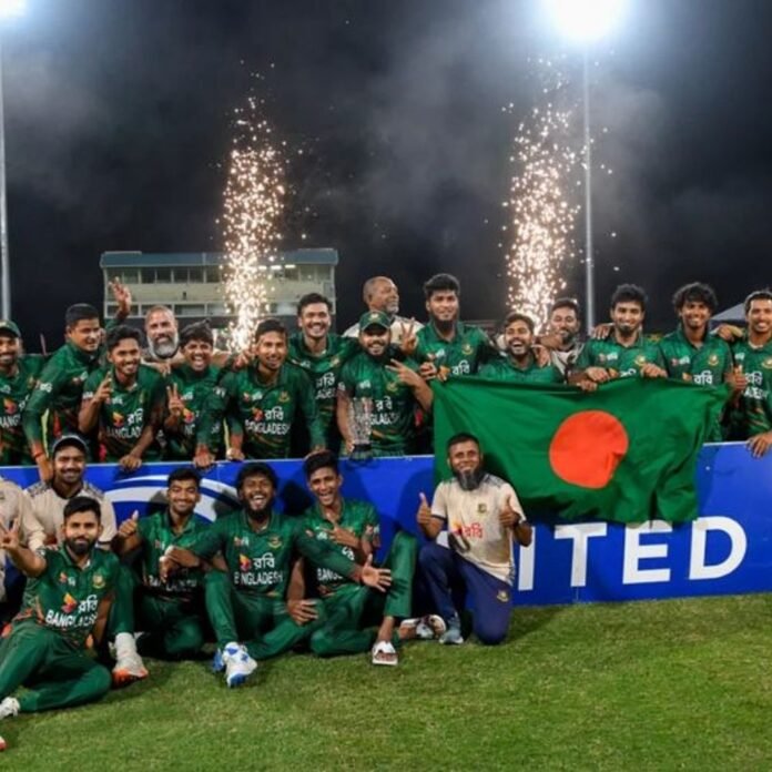 बांग्लादेश ने तीसरे टी-20 मुकाबले में वेस्टइंडीज को 80 रनों से हरा दिया है। इस तरह बांग्लादेश ने 3 मैचों की सीरीज 3-0 से अपने नाम किया और पहली बार टी-20 फॉर्मेट में वेस्टइंडीज खिलाफ क्लीन स्वीप किया। किंग्सटन में शुक्रवार को खेले गए मैच में बांग्लादेश के कप्तान लिटन दास ने टॉस जीतकर पहले बैटिंग का फैसला किया। टीम ने 20 ओवर में 7 विकेट पर 189 रन बनाए। जवाब में कैरेबियन टीम 16.4 ओवर में 109 रनों पर सिमट गई। जाकेर अली ने नाबाद 72 रनों बनाए। उन्हें प्लेयर ऑफ द मैच चुना गया। बांग्लादेश के लिए जाकेर अली ने नाबाद 72 रन बनाए