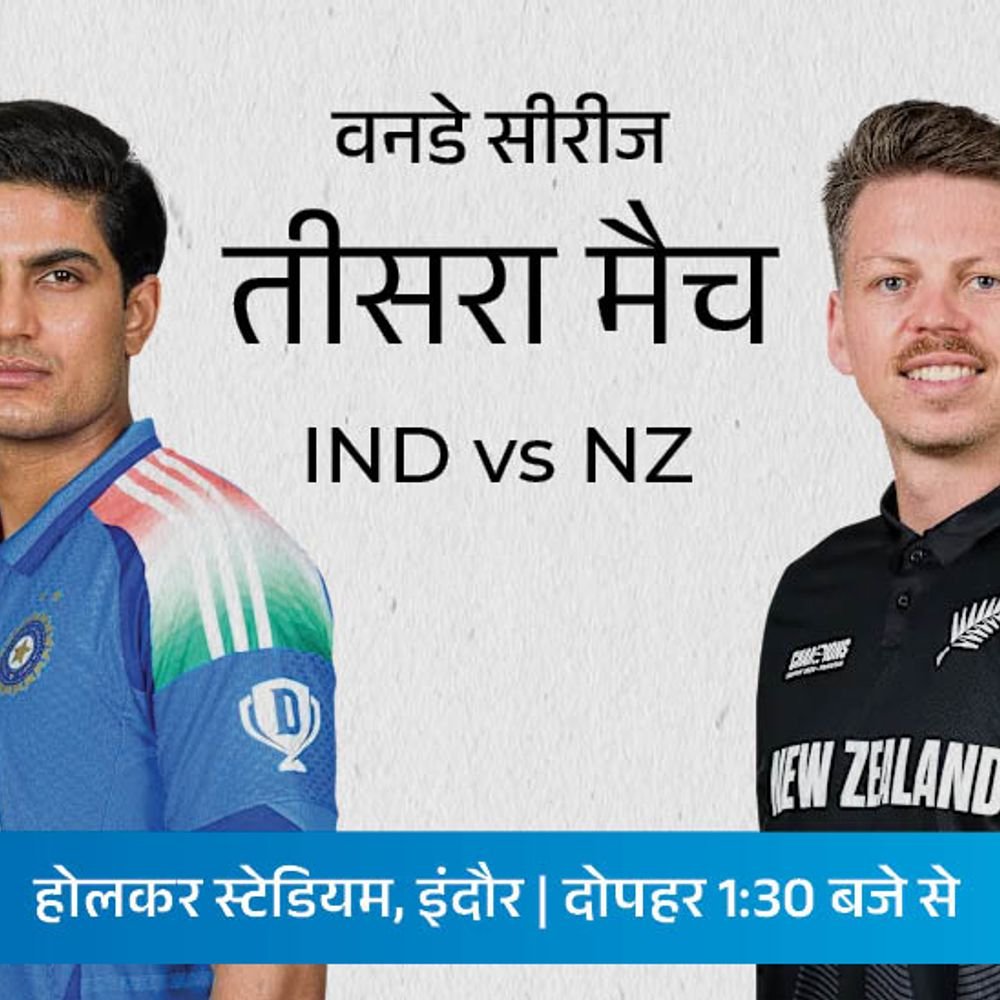 भारत और न्यूजीलैंड के बीच वनडे सीरीज का निर्णायक मुकाबला आज इंदौर के होलकर स्टेडियम में खेला जाएगा। मुकाबला दोपहर 1:30 बजे शुरू होगा, जबकि टॉस 1:00 बजे होगा। टीम इंडिया के दिग्गज रोहित शर्मा और विराट कोहली आज का मुकाबला खेलने के बाद अगले 6 महीने तक इंटरनेशनल क्रिकेट से दूर रहेंगे। दोनों टेस्ट और टी-20 से संन्यास ले चुके हैं, इसलिए जुलाई में इंग्लैंड दौरे पर वनडे खेलते नजर आएंगे। सीरीज 1-1 से बराबर है। भारत ने पहला वनडे 4 विकेट से जीता, जबकि दूसरे मुकाबले में न्यूजीलैंड ने 7 विकेट से बाजी मारी। न्यूजीलैंड के पास भारत में पहली वनडे सीरीज जीतने का मौका है, टीम यहां 7 सीरीज हार चुकी है। भारत ने न्यूजीलैंड के खिलाफ 52% मैच जीते