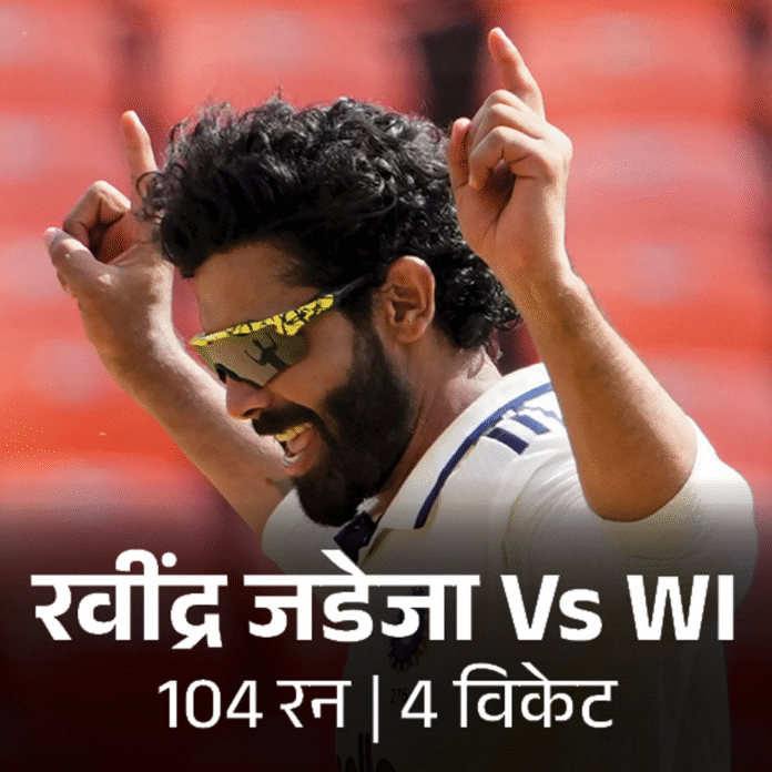 ऑलराउंडर रवींद्र जडेजा इस मैच में बल्लेबाजी और गेंदबाजी दोनों से वेस्टइंडीज पर भारी पड़े। उन्होंने भारत की पहली पारी में नाबाद 104 रन बनाए। यह उनके टेस्ट करियर की छठी सेंचुरी है। इसके बाद उन्होंने वेस्टइंडीज की दूसरी पारी में 4 विकेट भी झटके। टेस्ट क्रिकेट में अब जडेजा के 3990 रन और 334 विकेट हो गए हैं। वे अब टेस्ट में 4000 रन बनाने के साथ 300 विकेट लेने वाले ऑलराउंडर्स के क्लब में पहुंचने के बहुत करीब आ गए हैं। इसके लिए उन्हें सिर्फ 10 रन की जरूरत है। अब तक सिर्फ कपिल देव (भारत) और डेनियल विटोरी (न्यूजीलैंड) ही इस मुकाम तक पहुंच पाए हैं। केएल राहुल और ध्रुव जुरेल की यादगार सेंचुरी