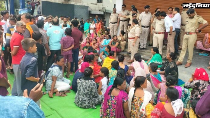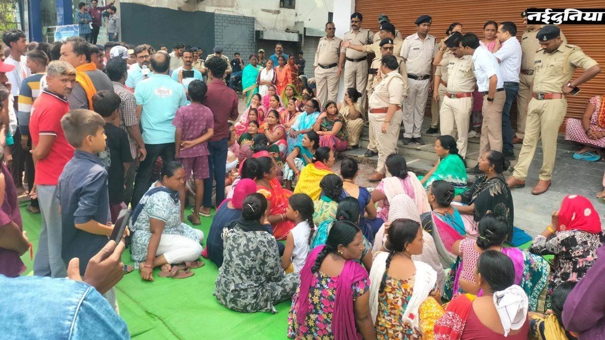 भिलाई में शराब दुकान खोलने के विरोध में धरने पर बैठी महिलाएं, पिछले हफ्ते हुई हत्या को लेकर लोगों में आक्रोश