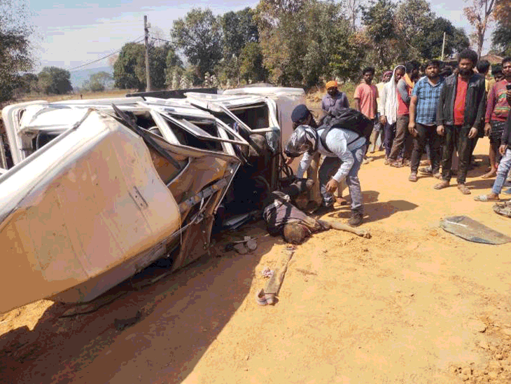 छत्तीसगढ़ के सरगुजा में बोलेरो और कंटेनर के बीच टक्कर में 4 लोगों की मौके पर मौत हो गई है। जबकि 7 लोग गंभीर रूप से घायल हैं। हादसे के बाद गुस्साए लोगों ने कंटेनर में आग लगी दी। बोलेरो सवार महाशिवरात्रि पर शिव मंदिर से दर्शन कर लौट रहे थे। घटना सीतापुर थाना क्षेत्र की है। जानकारी के मुताबिक, यह हादसा नेशनल हाईवे-43 पर विशुनपुर गांव के प्लांट के पास आज (बुधवार) दोपहर करीब 12.30 बजे हुआ है। टक्कर के बाद बोलेरो पलट गई। जिससे कार बुरी तरह डैमेज हो गई। मरने वालों में रेवापुर-सखौली निवासी एक महिला, बच्चा और दो पुरुष शामिल हैं। पुलिस ने कंटेनर में लगी आग बुझाई हादसे के बाद लोग बोलेरो के अंदर ही फंस गए। जिन्हें स्थानीय लोगों की मदद से बाहर निकाला गया। सभी घायलों को एंबुलेंस के जरिए सीतापुर सीएचसी अस्पताल भेजा गया। जहां उनका इलाज चल रहा है। हादसे में ट्रक ड्राइवर भी घायल है। घटना के बाद गुस्साई भीड़ ने कंटेनर में आग लगा दी। जिसे पुलिस कर्मियों ने बुझा लिया है। किलकिला शिव मंदिर से दर्शन कर लौट रहे थे बोलेरो क्रमांक CG 15 ED 7078 में सवार होकर 11 लोग महाशिवरात्रि पर सीतापुर के किलकिला शिव मंदिर गए थे। सुबह दर्शन कर अपने घर रेवापुर-सखौली लौट रहे थे। इसी दौरान ब्लैक स्पॉट वाली जगह पर हादसा हो गया। फिलहाल पुलिस मामले की जांच कर रही है। ………………………….. सड़क हादसे से जुड़ी ये खबर भी पढ़ें… महाकुंभ जा रहे CG के हेड-कॉन्स्टेबल,मां-बेटे समेत 7 की मौत:यूपी में हादसा, ट्रेलर से टक्कर के बाद उछलकर मकान में घुसी कार महाकुंभ जा रहे छत्तीसगढ़ के हेड-कॉन्स्टेबल रवि मिश्रा, मां उषा मिश्रा और बेटे अथर्व मिश्रा, ड्राइवर समेत 7 लोगों की यूपी में मौत हो गई। इलाज के दौरान मेड दुर्गा देवी ने भी दम तोड़ दिया। सोनभद्र में रविवार को तेज रफ्तार कार और ट्रेलर की आमने-सामने की टक्कर हुई थी। पढ़ें पूरी खबर…