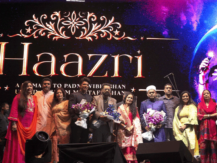 मुंबई में शनिवार को हाजरी कार्यक्रम 2026 में बीकेसी के जियो वर्ल्ड गार्डन में पद्म विभूषण से सम्मानित उस्ताद गुलाम मुस्तफा खान को श्रद्धांजलि दी गई। पहली बार उनके शिष्यों और देश के बड़े सिंगरों ने एक ही मंच शेयर किया। यह कॉन्सर्ट उस्ताद साहब की पांचवीं पुण्यतिथि पर हुआ। ए.आर. रहमान, हरिहरन, सोनू निगम और शान ने सिंगर्स की तरह नहीं, बल्कि शिष्यों की तरह अपने गुरु को हाजरी दी। इस कार्यक्रम का आयोजन उस्ताद साहब के बेटे रब्बानी मुस्तफा खान और बहू नम्रता गुप्ता खान ने किया था। ए.आर. रहमान ने सूफी गीतों से कार्यक्रम की शुरुआत की। उन्होंने कुन फाया कुन, ख्वाजा मेरे ख्वाजा और अरजियां जैसे गाने गाए। इसके बाद उन्होंने मुस्तफा परिवार के साथ आओ बलमा और पिया हाजी अली परफॉर्म किया। सिंगर शान ने मैं हूं डॉन, चांद सिफारिश और ओम शांति ओम जैसे गाने गाए, साथ ही उस्ताद साहब की गजल चले आओ भी सुनाई। हरिहरन ने तू ही रे, रोजा, बाहों के दरमियां और यादें जैसे गाने गाए। सोनू निगम ने परदेसिया, कल हो ना हो, अभी मुझ में कहीं और संदेशे आते हैं के साथ शाम का समापन किया। कौन थे उस्ताद गुलाम मुस्तफा खान? उस्ताद गुलाम मुस्तफा खान हिंदुस्तानी शास्त्रीय गायक और संगीत गुरु थे। वे रामपुर-सहसवान घराने से जुड़े थे। उनका जन्म 3 मार्च 1931 को उत्तर प्रदेश के बदायूं में हुआ था और उन्हें ‘जूनियर तानसेन’ की उपाधि मिली। संगीत के क्षेत्र में उनके योगदान के लिए उन्हें पद्म श्री (1991), पद्म भूषण (2006), पद्म विभूषण (2018) और संगीत नाटक अकादमी पुरस्कार (2003) से सम्मानित किया गया। उन्होंने बॉलीवुड और शास्त्रीय संगीत के कई दिग्गज कलाकारों को ट्रेनिंग दी है, जिनमें लता मंगेशकर, आशा भोसले, ए.आर. रहमान, सोनू निगम, हरिहरन, और शान जैसे नाम शामिल हैं।