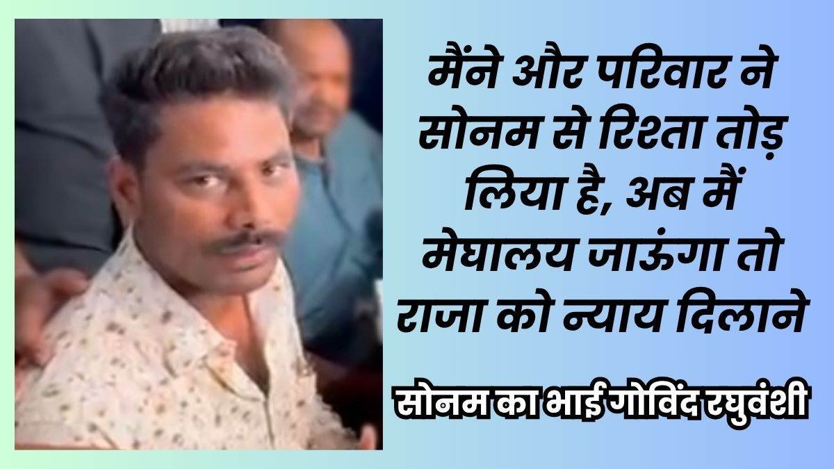 सोनम रघुवंशी के भाई गोविंद रघुवंशी राजा रघुवंशी के घर पहुंचे। उन्होंने कहा कि अगर उनकी बहन सोनम दोषी है तो उसे फांसी पर लटका देना चाहिए। गोविंद ने यह भी कहा कि राज कुशवाह उनके यहां काम करता था और सोनम उसे राखी बांधती थी। गोविंद ने अपने परिवार की बेगुनाही का दावा किया और न्याय की मांग की।