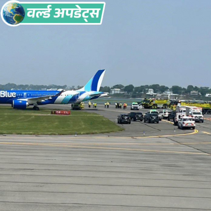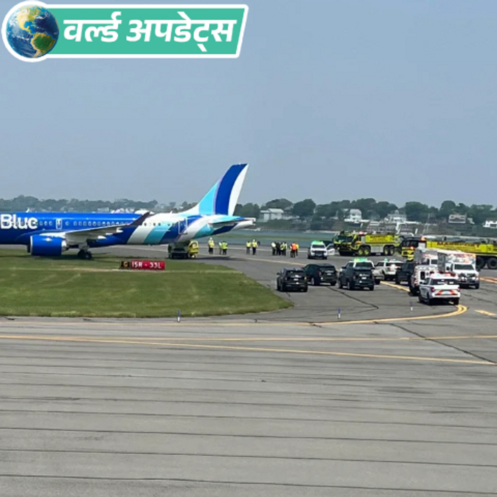 वर्ल्ड अपडेट्स:बोस्टन एयरपोर्ट पर जेटब्लू विमान रनवे से फिसला; प्लेन के मुड़ते वक्त हुआ हादसा