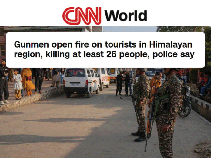 जम्मू-कश्मीर में मंगलवार को आतंकियों ने फायरिंग करके 27 पर्यटकों की हत्या कर दी। 20 घायल हैं। यह हमला पहलगाम की बैसरन घाटी में दोपहर 2:45 बजे हुआ। जम्मू-कश्मीर में 2019 के पुलवामा अटैक के बाद ये सबसे बड़ा हमला है। वर्ल्ड मीडिया में इस घटना को प्रमुखता से कवर किया जा रहा है। पढ़िए ब्रिटेन के डेली मेल और पाकिस्तान के द डॉन से लेकर अमेरिका के CNN तक ने इस हमले पर क्या लिखा…