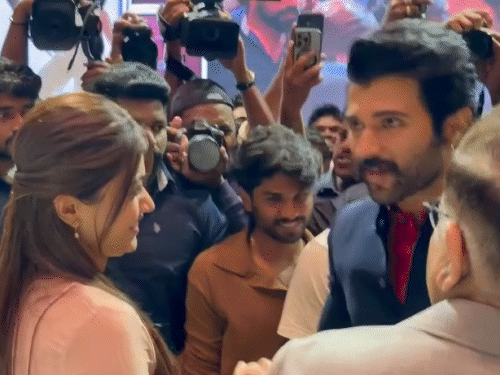 साउथ एक्ट्रेस रश्मिका मंदाना की फिल्म द गर्लफ्रेंड 7 नवंबर को सिनेमाघरों में रिलीज हुई है। फिल्म को पॉजिटिव रिस्पॉन्स मिल रहा है। हाल ही में फिल्म को लेकर एक सक्सेस पार्टी रखी गई, जिसमें कई सेलेब्स पहुंचे। एक्टर विजय देवरकोंडा भी पार्टी में मौजूद थे। इस पार्टी का रश्मिका और विजय का एक वीडियो सोशल मीडिया पर वायरल हो रहा है। वीडियो में विजय रश्मिका को बधाई देते हैं और बाद में उन्होंने रश्मिका के हाथ पर किस किया। इस वीडियो के सामने आने के यूजर्स कह रहे हैं विजय ने पब्लिकली अपने और रश्मिका के रिश्ते को कन्फर्म कर दिया है। बता दें कि अक्टूबर के महीने में एम9 न्यूज की रिपोर्ट में दावा किया गया था कि रश्मिका और विजय ने सगाई कर ली है। यह सगाई दोनों परिवारों और कलाकारों के केवल करीबी दोस्तों की मौजूदगी में हुई थी। हाल ही में इंडिया टुडे की रिपोर्ट में विजय के एक करीबी सूत्र ने बताया था कि कपल अगले साल शादी करने कर रहा है। सगाई के बाद कई ऐसे वीडियो सामने आए हैं, जिनमें दोनों अपनी-अपनी इंगेजमेंट रिंग्स दिखाते हुए नजर आए हैं। विजय और रश्मिका लंबे समय से एक-दूसरे के करीब हैं। हालांकि, दोनों ने कभी अपने रिश्ते को आधिकारिक तौर पर स्वीकार नहीं किया और न ही सार्वजनिक रूप से इसके बारे में बात की। रश्मिका मंदाना का फिल्म का करियर रश्मिका मंदाना ने 2016 में कन्नड़ फिल्म किरिक पार्टी से अपने एक्टिंग करियर की शुरुआत की, जो बॉक्स ऑफिस पर हिट रही। इसके बाद उन्होंने ‘अंजनी पुत्रा’ और ‘चमक’ जैसी फिल्मों में भी काम किया। 2018 में उन्होंने तेलुगु फिल्म ‘चालो’ से तेलुगु सिनेमा में कदम रखा, जो हिट रही। उसी साल आई ‘गीता गोविंदम’ ने उन्हें पहचान मिली। इसके बाद उन्होंने ‘देवदास’, ‘यजमाना’, ‘डियर कॉमरेड’, ‘भीष्म’, ‘सरिलेरु नीकेव्वरु’, ‘पुष्पा: द राइज’ और ‘पुष्पा 2: द रूल’ जैसी फिल्मों में भी एक्टिंग की। वहीं, बॉलीवुड में रश्मिका मंदाना ने ‘एनिमल’ और ‘छावा’ जैसी फिल्मों में काम किया है और वह सलमान खान की ‘सिकंदर’ में भी नजर आई हैं। रश्मिका की अपकमिंग फिल्मों में ‘थामा’ और ‘कॉकटेल 2’ शामिल हैं। विजय देवरकोंडा का फिल्म का करियर विजय देवरकोंडा ने 2011 में रवि बाबू द्वारा निर्देशित रोमांटिक कॉमेडी फिल्म ‘नुव्विला’ से अपने एक्टिंग करियर की शुरुआत की। इसके बाद उन्होंने ‘लाइफ इज ब्यूटीफुल’ (2012) और ‘येवड़े सुब्रमण्यम’ (2015) जैसी फिल्मों में छोटे रोल प्ले किए। लीड रोल के तौर पर उनकी पहली फिल्म ‘पेली चूपुलु’ 2016 में आई, जो हिट रही। इसके बाद उन्होंने 2017 में ‘द्वारका’ और फिर ‘अर्जुन रेड्डी’ में एक्टिंग की। जिससे उन्हें खास पहचान मिली। 2018 में, उन्होंने ‘महानती’, ‘गीता गोविंदम’ और ‘टैक्सीवाला’ सहित कई फिल्मों में एक्टिंग की। गीता ग