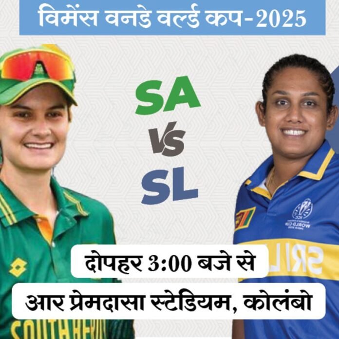 विमेंस वनडे वर्ल्ड कप का 18वां लीग स्टेज मुकाबला आज साउथ अफ्रीका और श्रीलंका के बीच खेला जाएगा। मैच कोलंबो के आर प्रेमदासा स्टेडियम में दोपहर 3:00 बजे से शुरू होगा। टॉस हर मुकाबले की तरह दोपहर 2.30 बजे होना है। साउथ अफ्रीका ने अपने पिछले मैच में बांग्लादेश को आखिरी ओवर में हराकर टूर्नामेंट में लगातार तीसरी जीत दर्ज की थी। इस जीत के साथ साउथ अफ्रीका तीसरे स्थान पर पहुंच गई है। श्रीलंका का पिछला मैच खराब मौसम की वजह से रद्द रहा। श्रीलंका अब तक एक भी मैच नहीं जीत सकी है। टीम के 2 मैच रद्द रहे हैं, टीम 2 पॉइंट्स के साथ पॉइंट्स टेबल में सातवें स्थान पर है। मई में हुआ था दोनों का सामना