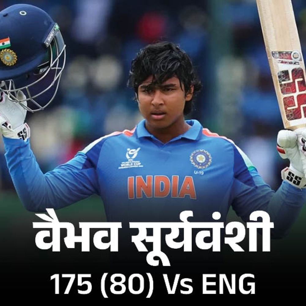 14 साल के वैभव सूर्यवंशी ने अंडर-19 वर्ल्ड कप फाइनल में रिकॉर्ड की झड़ी लगा दी है। जिम्बाब्वे के हरारे क्रिकेट ग्रााउंड में इंग्लैंड के खिलाफ खिताबी मुकाबले में भारतीय ओपनर ने 80 गेंदों पर 175 रन की पारी खेली। उन्होंने 15 चौके और 15 छक्के जमाए। वैभव की बल्लेबाजी की बदौलत भारत ने 50 ओवर में 411 रन बनाए। स्टोरी में जानते हैं कि वैभव ने कौन-कौन से रिकॉर्ड ध्वस्त किए। फाइनल में सबसे ज्यादा रन बनाने वाले बैटर वैभव अंडर-19 वर्ल्ड कप फाइनल में सबसे ज्यादा रन बनाने वाले बल्लेबाज बन गए हैं। वैभव ने इंग्लैंड के खिलाफ 175 रन की पारी खेली। इससे पहले यह रिकॉर्ड भारत के ही उन्मुक्त चंद के नाम था, जिन्होंने 2012 में ऑस्ट्रेलिया के खिलाफ नाबाद 111 रन बनाए थे। तीसरे नंबर पर ऑस्ट्रेलिया के ब्रेट विलियम्स हैं। उन्होंने 1988 में पाकिस्तान के खिलाफ 108 रन बनाए थे। एक पारी में सबसे ज्यादा छक्के वैभव अंडर-19 वर्ल्ड कप की एक पारी में सबसे ज्यादा छक्के लगाने वाले बल्लेबाज बन गए हैं। उन्होंने पारी में 15 छक्के लगाए। इससे पहले यह रिकॉर्ड ऑस्ट्रेलिया के माइकल हिल के नाम था, जिन्होंने 2008 में नामीबिया के खिलाफ 12 छक्के लगाए थे, जबकि क्रेग सिमंस ने 2002 में केन्या के खिलाफ 11 छक्के लगाए थे। दूसरा सबसे तेज शतक वैभव अंडर-19 वर्ल्ड कप में सबसे तेज शतक लगाने वाले दूसरे बैटर बने। उन्होंने 55 बॉल पर सेंचुरी लगाई। ऑस्ट्रेलिया के विल मलाइजचुक इस लिस्ट में टॉप पर हैं। उन्होंने इसी वर्ल्ड कप में जापान के खिलाफ महज 51 गेंदों में शतक ठोक दिया था। अंडर-19 वर्ल्ड कप में सबसे ज्यादा छक्के अंडर-19 वर्ल्ड कप में सबसे ज्यादा छक्के लगाने का रिकॉर्ड अब वैभव सूर्यवंशी के नाम दर्ज हो गया है। वैभव ने इस वर्ल्ड कप में 30 छक्के जड़े हैं। इससे पहले यह रिकॉर्ड डेवाल्ड ब्रेविस के नाम था, जिन्होंने 2022 अंडर-19 वर्ल्ड कप में 18 छक्के लगाए थे। भारत ने अंडर-19 वर्ल्ड का सबसे बड़ा स्कोर बनाया भारत ने इंग्लैंड के खिलाफ फाइनल में 411 रन बनाए। यह अंडर-19 वर्ल्ड कप के फाइनल का सबसे बड़ा स्कोर है। पिछला रिकॉर्ड 253 रन का था, जोकि ऑस्ट्रेलिया ने भारत के खिलाफ 2024 में बनाया था। ———————— मैच से जुड़ी यह खबर भी पढ़ें… भारत ने इंग्लैंड को 412 का टारगेट दिया:अंडर-19 वर्ल्डकप फाइनल का सबसे बड़ा स्कोर भारत ने अंडर-19 वर्ल्ड कप के फाइनल में इंग्लैंड को 412 रन का टारगेट दिया है। टीम ने हरारे स्पोर्ट्स क्लब में टॉस जीतकर बैटिंग चुनी। इंडिया ने 50 ओवर में 9 विकेट पर 411 रन बनाए। कनिष्क चौहान 37 रन बनाकर नाबाद लौटे। वैभव सूर्यवंशी 80 बॉल पर 175 रन बनाकर आउट हुए। उन्होंने 218.75 की स्ट्राइक रेट से बैटिंग करते हुए 15 चौके और 15 छक्के लगाए। कप्तान आयुष म्हात्रे (53 रन) ने अर्धशतक लगाया। अभिज्ञान कुंडू ने 40, वेदांत त्रिवेदी ने 32 और विहान मल्होत्र