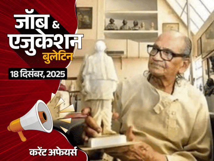 आज टॉप स्टोरी में मुजफ्फरनगर में बच्चियों को स्कूल से निकाले जाने समेत अन्य खबरें। टॉप जॉब्स में रेल कोच फैक्ट्री में 550 वैकेंसी समेत 4 नौकरियां। करेंट अफेयर्स में हरियाणा के नए जिले समेत 4 खबरें। टॉप स्टोरी 1. माता-पिता जेल गए, स्कूल ने बेटियों को निकाला मुजफ्फरनगर में माता-पिता के जेल जाने के बाद एक स्कूल ने उनकी 3 नाबालिग बेटियों को पढ़ाने से इनकार कर दिया। स्कूल मैनेजमेंट ने तीनों बच्चियों को ट्रांसफर सर्टिफिकेट (TC) थमाते हुए स्कूल से निकाल दिया। आरोप है कि स्कूल मैनेजमेंट ने बेटियों से साफ शब्दों में कह दिया- तुम्हारे माता-पिता जेल में हैं। हम ऐसे बच्चों को नहीं पढ़ा सकते। एक टीचर ने जातिसूचक शब्द भी कहे। इसके बाद तीनों बच्चियों के नाम स्कूल के रजिस्टर से काट दिए गए और TC (ट्रांसफर सर्टिफिकेट) दे दी गई। स्कूल से नाम कटने के बाद तीनों बच्चियां जेल पहुंचीं और अपने पिता से पूरी बात बताई। बाद में जेल का निरीक्षण को पहुंचे डीएम उमेश मिश्रा से पिता ने पूरी बात बताई। इसके बावजूद स्कूल मैनेजमेंट के खिलाफ कोई कार्रवाई नहीं हुई। अब जेल से छूटने के बाद पिता बच्चियों को लेकर डीएम ऑफिस पहुंचा और लिखित शिकायत की है। घटना जिला मुख्यालय से 30 किलोमीटर दूर तीतावी थाना क्षेत्र की है। 2. UP बोर्ड ने 12वीं के प्रैक्टिकल्स की डेट जारी की UP बोर्ड ने 2026 के 12वीं के बोर्ड एग्जाम्स के प्रैक्टिकल्स की डेट्स जारी कर दी हैं। एग्जाम्स दो फेज में होंगे। पहला फेज 24 जनवरी से 1 फरवरी, 2026 के बीच होगा। वहीं दूसरा फेज 2 से 9 फरवरी, 2026 के बीच होगा। इसके अलावा UP बोर्ड ने साल 2026 में होने वाले बोर्ड एग्जाम्स के लिए सेंटर लिस्ट भी जारी कर दी है। स्टूडेंट्स upmsp.edu.in पर लिस्ट चेक कर सकते हैं। 3. ओडिशा के सरकारी स्कूल में दीवार ढहने से छात्र की मौत ओडिशा के एक स्कूल की दीवार ढहने से तीसरी क्लास में पढ़ने वाले एक बच्चे की मौत हो गई। कोरापुट जिले का गांधी नगर आश्रम रेजिडेंशियल स्कूल SC, ST बच्चों के लिए चलाया जाता है। यहां बुधवार को स्कूल के हॉस्टल की 4 फुट दीवार ढहने के बाद कई बच्चों को अस्पताल में भर्ती कराया गया था। इलाज के दौरान आज 8 साल के प्रेमानंद भत्रा की मौत हो गई। फिलहाल मामले की जांच की जा रही है। करेंट अफेयर्स 1. लोकसभा में VB-G Ram G बिल पास 2. भारत-ओमान के बीच व्यापार समझौता हुआ 3. मूर्तिकार राम सुतार का निधन 4. हरियाणा में नए जिले को मंजूरी टॉप जॉब्स 1. रेल कोच फैक्ट्री में अप्रेंटिस के 550 पदों पर भर्ती रेल कोच फैक्ट्री, कपूरथला ने अप्रेंटिस के 550 पदों पर भर्ती निकाली है। उम्मीदवार ऑफिशियल वेबसाइट rcf.indianrailways.gov.in के जरिए ऑनलाइन आवेदन कर सकते हैं। ऑनलाइन आवेदन लिंक 2. बैंक ऑफ इंडिया में 514 पदों पर भर्ती बैंक ऑफ इंडिया ने 514 क्रेडिट ऑफिसर के पदों पर भर्ती का नोटि