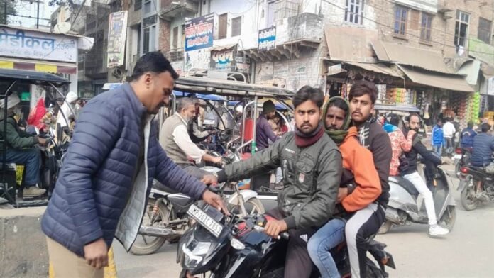 ट्रैफिक प्रभारी ने किशोरों से बाइक का रजिस्ट्रेशन, ड्राइविंग लाइसेंस मांगा तो एक किशोर बोला किसर रजिस्ट्रेशन तो घर पर रखा है और ड्राइविंग लाइसेंस बनवाने की उम्र नहीं है। इस पर ट्रैफिक सूबेदार आदित्य मिश्रा ने किशोरों को अपने पिता को गाड़ी छुड़ाने के लिए बुलाने को कहा।