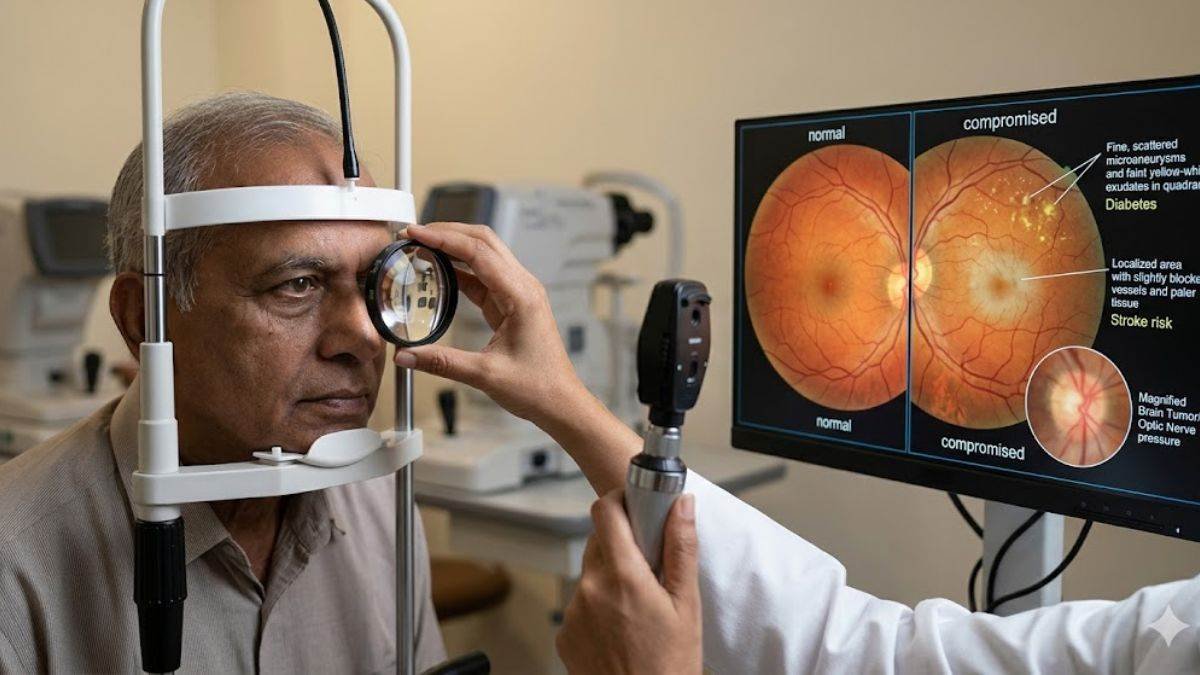 टॉप न्यूज़ सिर्फ चश्मा नहीं, आंखों का टेस्ट बताता है डायबिटीज से लेकर ब्रेन ट्यूमर तक का खतरा By Krishna - April 5, 2026 0 2 FacebookTwitterPinterestWhatsApp Eyes Care: डॉक्टर आंखों की नसों और रेटिना की जांच के जरिए डायबिटीज, स्ट्रोक और अन्य समस्याओं का पता लगा सकते हैं।