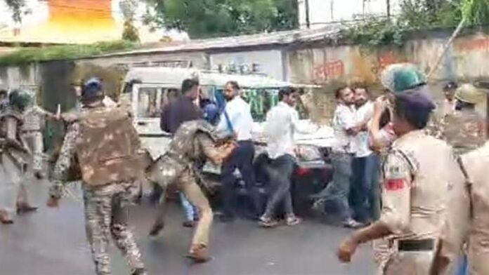 करणी सेना के अन्य पदाधिकारियों और सैनिकों का मिली तो उन्होंने पुलिस कार्रवाई का विरोध करते हुए शहर का खंडवा बायपास जाम कर दिया। आरोपित पुलिसकर्मियों पर कार्रवाई की मांग को लेकर चक्काजाम कर दिया गया। जब पुलिस जिलाध्यक्ष को पुलिस वाहन में गिरफ्तार कर ले जाया जा रहा था जब उन्होंने सब इंस्पेक्टर को वर्दी उतारकर मिलने का चैलेंज कर दिया।