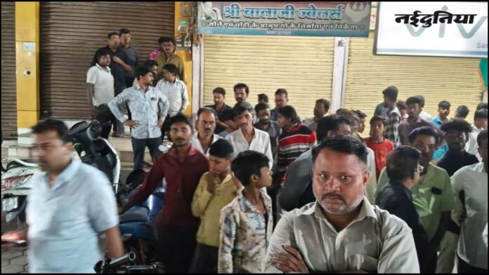टॉप न्यूज़ हरसूद में व्यापारी से फिल्मी स्टाइल में लूट, 5 लाख के सोने-चांदी के गहनों से भरा बैग लूटकर बदमाश फरार, घटना से हड़कंप By Krishna - March 23, 2026 0 1 FacebookTwitterPinterestWhatsApp हरसूद नगर के सडियापानी चौराहे स्थित श्री बालाजी ज्वेलर्स के मालिक से अज्ञात बदमाश सोना-चांदी के गहनों से भरा बैग लूट कर फरार हो गए। बैग में चार से पांच लाख रुपये का माल बताया जा रहा है।