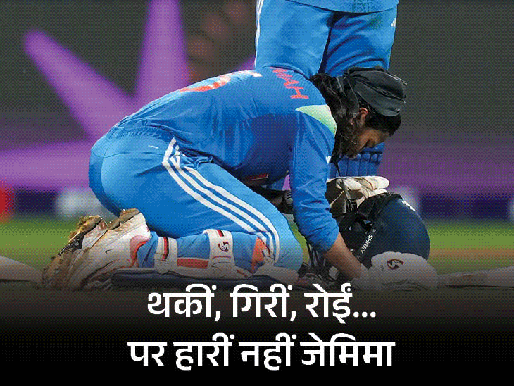19 अक्टूबर 2025। साउथ अफ्रीका और ऑस्ट्रेलिया के बाद इंग्लैंड ने भी विमेंस वनडे वर्ल्ड कप में भारत को हरा दिया। ट्रॉफी जीतना तो दूर, इंडिया विमेंस का सेमीफाइनल में पहुंचना भी मुश्किल था। साल 2000 की चैंपियन न्यूजीलैंड से मैच होना बाकी था और टीम इंडिया मोमेंटम को पूरी तरह खो चुकी थी। वहां से आज 31 अक्टूबर का दिन, इंडिया विमेंस ने फाइनल में एंट्री कर ली। एंट्री भी मामूली नहीं, 7 बार की चैंपियन और टूर्नामेंट में अब तक नहीं हारी ऑस्ट्रेलिया को न सिर्फ हराया, बल्कि विमेंस वनडे इतिहास का सबसे बड़ा टारगेट भी चेज किया। इस जीत की इबारत लिखी, भारत की कप्तान हरमनप्रीत कौर और शतक बनाकर नॉटआउट रहीं जेमिमा रोड्रिग्ज ने। स्टोरी में जानते हैं भारत ने ऐतिहासिक कमबैक को कैसे अंजाम दिया… श्रीलंका-पाकिस्तान को आसानी से हराया वनडे वर्ल्ड कप की शुरुआत भारत ने गुवाहाटी में श्रीलंका के खिलाफ मैच से की। बरसापारा स्टेडियम में पहले बैटिंग करते हुए भारत ने 269 रन बना दिए। जवाब में श्रीलंका को 211 पर ही समेट दिया। फिफ्टी लगाने के साथ 3 विकेट लेने वालीं दीप्ति शर्मा प्लेयर ऑफ द मैच रहीं। दूसरे मुकाबले में भारत का सामना चीर-प्रतिद्वंद्वी पाकिस्तान से हुआ। कोलंबो में स्पिन फ्रेंडली पिच थी, जहां पाकिस्तानी स्पिनर्स को फायदा हो सकता था। भारत ने यहां 247 रन बनाए और पाकिस्तान को 159 रन पर ही समेट कर लगातार दूसरा मैच जीत लिया। 3 विकेट लेने वालीं तेज गेंदबाज क्रांति गौड़ प्लेयर ऑफ द मैच रहीं। साउथ अफ्रीका ने दिलाई पहली हार 2 लगातार जीत के साथ टीम इंडिया विशाखापट्टनम पहुंची, जहां मुकाबला साउथ अफ्रीका से होना था। साउथ अफ्रीका इंग्लैंड के खिलाफ 69 रन पर ऑलआउट हो चुकी थी। पहले बैटिंग करते हुए भारत ने 102 रन पर 6 विकेट गंवा दिए। वहां से विकेटकीपर ऋचा घोष ने 94 रन बनाए और टीम को 251 तक पहुंचा दिया। 252 के टारगेट के सामने साउथ अफ्रीका ने भी 5 विकेट महज 81 रन पर गंवा दिए। लौरा वोल्वार्ट फिफ्टी बनाकर टीम को संभाले हुए थीं, वे 70 रन बनाकर आउट हुईं। लगा कि अब इंडिया जीत जाएगी, लेकिन क्लो ट्रायोन ने 49 और नदीन डी क्लर्क ने 84 रन बनाकर टीम को 7 गेंद पहले 3 विकेट से जीत दिला दी। ऑस्ट्रेलिया-इंग्लैंड ने मोमेंटम तोड़ा टूर्नामेंट में मिली पहली हार के बाद भारत का सामना 7 बार की चैंपियन ऑस्ट्रेलिया से हो गया। विशाखापट्टनम में भारत ने फाइट दिखाई और ओपनर्स की फिफ्टी के दम पर 330 रन बना दिए। हालांकि, टीम 7 गेंद बाकी रहते ही ऑलआउट हो गई। भारत को हराने के लिए ऑस्ट्रेलिया को सबसे बड़ा टारगेट हासिल करना था। टीम से कप्तान एलिसा हीली ने सेंचुरी लगा दी। फीबी लिचफील्ड और एश्ले गार्डनर ने 40 प्लस रन बनाकर टीम को टारगेट के करीब पहुंचाया। एलिस पेरी ने आखिर में 47 रन बनाए और टीम को 6 गेंद पहले 