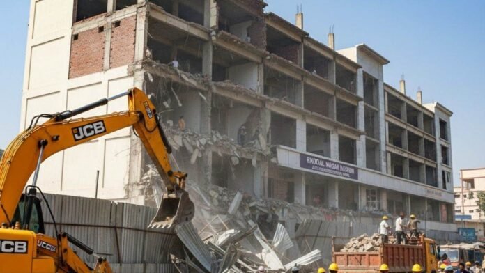 कोलार दशहरा मैदान के पास अवैध रूप से बनाई गई टीन की बाउंड्री को नगर निगम के अमले ने सोमवार को जेसीबी से तोड़ दिया। साथ ही नीलबड़ में डीपीएस स्कूल क्षेत्र में निर्माणाधीन शॉपिंग कॉम्प्लेक्स में अवैध रूप से बनाई गईं दीवारों को भी निगम के अमले ने ध्वस्त कर दिया।