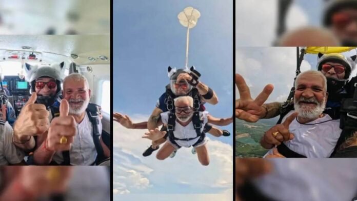 टॉप न्यूज़ Hariyana के 80 वर्षीय बुजुर्ग ने 15 हजार फीट की ऊंचाई से लगाई छलांग, Video देख CM की भी अटकी सांसें By Krishna - November 21, 2025 0 7 FacebookTwitterPinterestWhatsApp हरियाणा के 80 वर्षीय बलदेव सिंह ने 15 हजार फीट से पैराशूट जंप कर सबको चौंका दिया। उनका वीडियो वायरल हो गया है, जिसे लाखों लोग देख रहे हैं। सोशल मीडिया पर उन्हें “कूल दादू” कहा जा रहा है। हरियाणा के सीएम ने भी उनकी सराहना करते हुए ट्वीट किया।