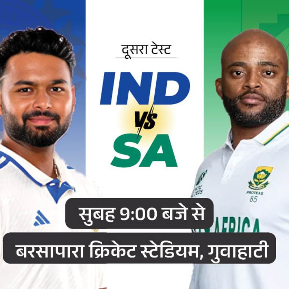 भारत और साउथ अफ्रीका के बीच दूसरा टेस्ट आज से गुवाहाटी में खेला जाएगा। बरसापारा स्टेडियम में मुकाबला रेगुलर टाइम से आधे घंटे पहले सुबह 9 बजे शुरू होगा। टॉस सुबह 8.30 बजे होना है। साउथ अफ्रीका कोलकाता टेस्ट जीतकर सीरीज में 1-0 से आगे है। टीम इंडिया पर घरेलू कंडीशन में 13 महीने के अंदर दूसरी बार क्लीन स्वीप का खतरा मंडरा रहा है। पिछले साल न्यूजीलैंड ने भारत को 3-0 से टेस्ट सीरीज हराई थी। साउथ अफ्रीका को भारत में आखिरी सीरीज जीत 25 साल पहले मिली थी। शुभमन गिल इंजरी के कारण नहीं खेल सकेंगे, उनकी जगह ऋषभ पंत भारत की कप्तानी करेंगे। हेड टु हेड में साउथ अफ्रीका आगे भारत और साउथ अफ्रीका के बीच अब तक 44 टेस्ट मैच खेले गए, भारत ने 16 और साउथ अफ्रीका ने 19 में जीत दर्ज की, जबकि 10 मैच ड्रॉ रहे। वहीं, भारत ने अपने घर में साउथ अफ्रीका के खिलाफ 20 टेस्ट खेले, जिनमें से 11 जीते और 6 गंवाए। वहीं, 3 मुकाबले ड्रॉ रहे। सिराज भारत के टॉप विकेट टेकर भारतीय कप्तान शुभमन गिल 2025 में टीम के टॉप रन स्कोरर हैं, उन्होंने इस साल 9 मैचों में 5 शतक लगाकर 983 रन बना दिए हैं। हालांकि, वे आज का मुकाबला नहीं खेल सकेंगे। उनके बाद रवींद्र जडेजा सबसे ज्यादा रन बनाने वाले बैटर हैं। वहीं मोहम्मद सिराज 41 विकेट लेकर टीम के टॉप गेंदबाज हैं। गिल दूसरे टेस्ट से बाहर गिल दूसरे टेस्ट से बाहर हो गए हैं। BCCI ने शुक्रवार को इसकी जानकारी दी। वे कोलकाता टेस्ट में गर्दन में ऐंठन की वजह से पहली पारी में सिर्फ तीन गेंदें खेलने के बाद रिटायर्ड हर्ट हो गए थे। इसके बाद उन्हें अस्पताल में भर्ती कराया गया। जिसके बाद वे मुकाबले में हिस्सा नहीं ले सके थे। गिल की जगह साई सुदर्शन, देवदत्त पडिक्कल या नीतीश रेड्डी में से किसी एक को मौका मिल सकता है। मुल्डर ने सबसे ज्यादा रन बनाए साउथ अफ्रीका के लिए 2025 में वियान मुल्डर ने सबसे ज्यादा रन बनाए हैं। उन्होंने जिम्बाब्वे के खिलाफ ट्रिपल सेंचुरी भी लगाई थी। वहीं लेफ्ट आर्म स्पिनर केशव महाराज 22 विकेट लेकर टीम के टॉप गेंदबाज बने हुए हैं। आधे घंटे पहले शुरू होगा मैच दूसरा टेस्ट 9 बजे से शुरू होगा। आमतौर पर भारत में टेस्ट मैच 9:30 बजे से शुरू होते हैं, लेकिन गुवाहाटी सहित भारत के उत्तर पूर्वी क्षेत्रों में सूरज जल्दी उग जाता है, इतना ही नहीं, जल्दी डूब भी जाता है। इसलिए यह मैच जल्दी शुरू होगा। गुवाहाटी टेस्ट का पहला सेशन सुबह 9 से 11 बजे के बीच होगा। उसके बाद 20 मिनट का टी-ब्रेक रखा जाएगा। फिर 11:20 से 1:20 के बीच दूसरा सेशन खेला जाएगा। उसके बाद 40 मिनट का लंच ब्रेक होगा। फिर तीसरा सेशन दोपहर 2 बज से 4 बजे तक खेला जाएगा। पिच और मौसम का रोल अहम बरसापारा स्टेडियम की पिच बैटिंग फ्रेंडली मानी जाती है। यहां गेंदबाजों के मुकाबले बल्लेबाजों को ज्यादा मदद मिलती है।