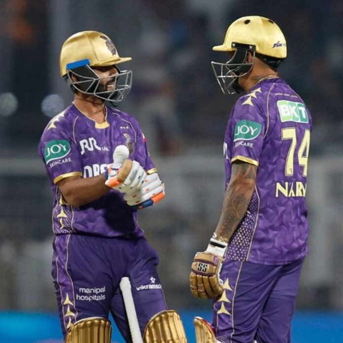 IPL का पहला मैच KKR Vs RCB:रहाणे 200 से ज्यादा के स्ट्राइक रेट से रन बना रहे, नरेन के साथ फिफ्टी पार्टनरशिप