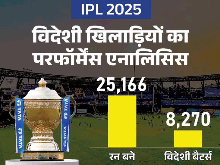 IPL का पूरा नाम वैसे तो इंडियन प्रीमियर लीग है, लेकिन 18 सीजन में 13 बार प्लेयर ऑफ द टूर्नामेंट का अवॉर्ड किसी न किसी विदेशी प्लेयर ने ही जीता। क्रिस गेल, सुनील नरेन, एबी डिविलियर्स, राशिद खान और लसिथ मलिंगा जैसे विदेशी प्लेयर्स ने इस लीग को और भी ज्यादा रोशन, चमकदार और फेमस बनाया। विदेशी प्लेयर्स का दबदबा इस बार भी देखने को मिला। क्योंकि लीग में 33% रन और 36% विकेट विदेशी खिलाड़ियों ने ही निकाले। जबकि उनकी संख्या भारतीय प्लेयर्स की मुकाबले एक तिहाई ही रही। ऑक्शन में भी विदेशियों का बोलबाला रहता है। मेगा ऑक्शन में 639.15 करोड़ रुपए खर्च हुए, जिनमें 40% रकम यानी करीब 256 करोड़ रुपए 62 विदेशी प्लेयर्स के खातों में ही चले गए। जबकि 120 भारतीयों को बाकी 60% रकम मिली थी। विदेशी प्लेयर्स का IPL 2025 में प्रदर्शन… पार्ट-1: प्लेयर्स में कौन टॉप पर रहा 3 विदेशियों ने 500+ रन बनाए, 9 में से 2 शतक भी लगाए