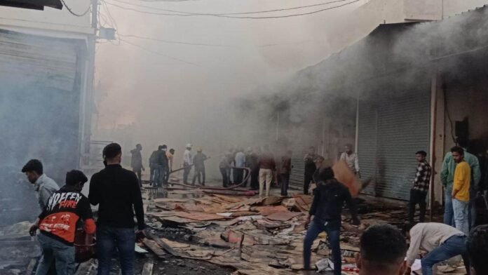 टॉप न्यूज़ Jabalpur News: जबलपुर के कठौंदा पटाखा बाजार में भीषण आग, कई दुकानें खाक By Krishna - January 26, 2025 0 33 FacebookTwitterPinterestWhatsApp कठौंदा के थोक पटाखा बाजार में आग लगने से कई दुकानें जलकर खाक हो गईं। पटाखों के धमाकों के बीच दमकलकर्मी आग बुझाने में जुटे हैं। बाजार में 47 से अधिक दुकानें हैं। आग के कारण अफरा-तफरी मच गई, और नुकसान का आकलन जारी है।