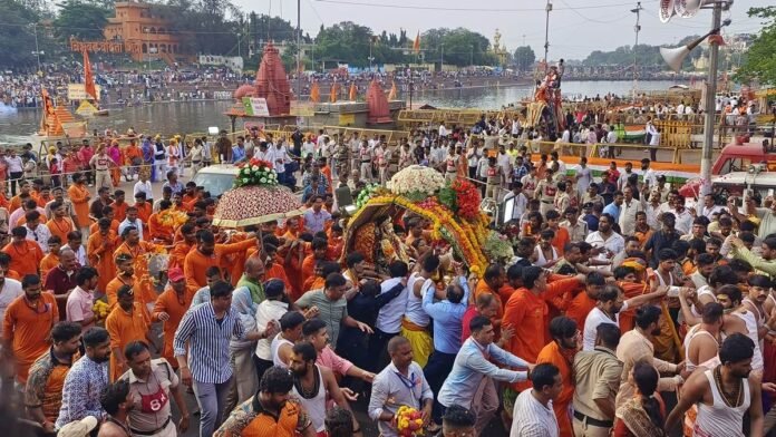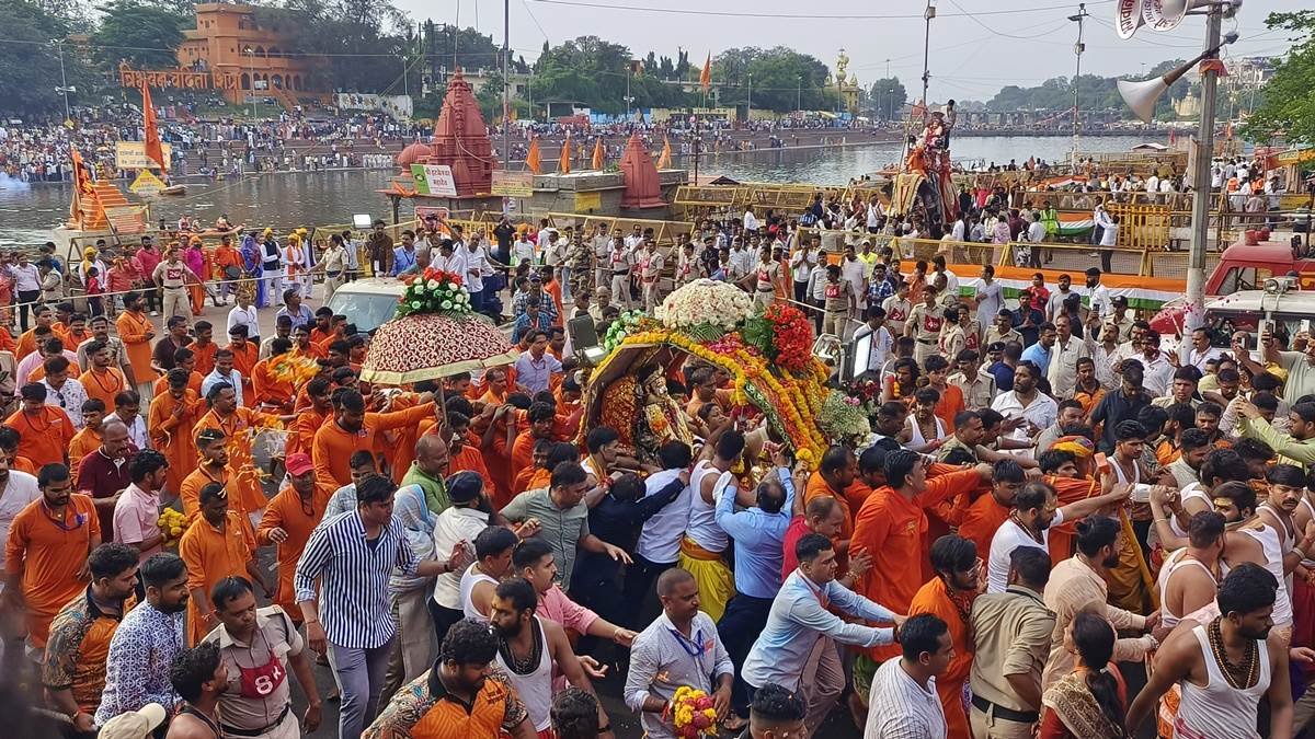 टॉप न्यूज़ Mahakal ki Sawari: भगवान महाकालेश्वर ने किया नगर भ्रमण, पांच रूपों में हुए दर्शन By Krishna - August 11, 2025 0 19 FacebookTwitterPinterestWhatsApp गजराज पर मनमहेश, गरूड़ रथ पर शिवतांडव, नंदी रथ पर उमा-महेश और डोल रथ पर श्री होल्कर स्टेट का मुखारविंद विराजमान था। सवारी निकलने के पूर्व सभामंडप में भगवान श्री चंद्रमौलेश्वर का पूजन किया गया।